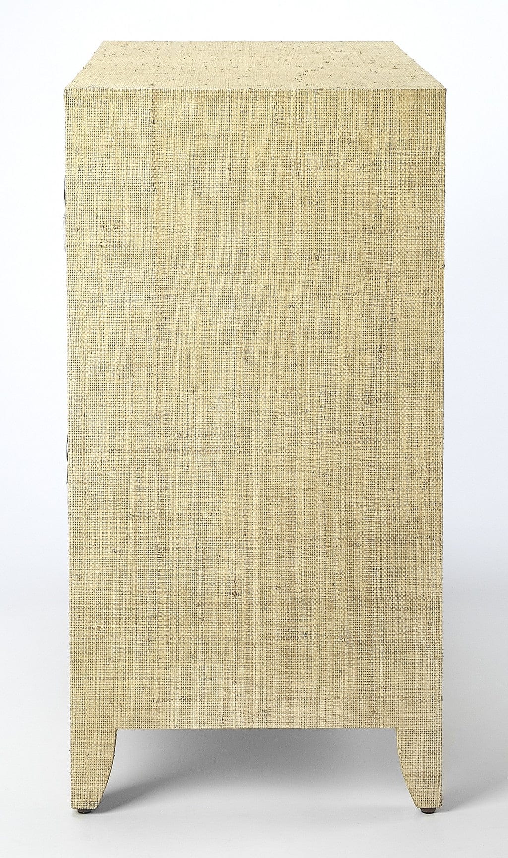 Add coastal ambiance to any space with this raffia-clad accent chest. Providing abundant storage and stylish contemporary lines, it boasts a cream finish and four drawer with felt-lined bottoms and silver finished crescent drawer pulls - a stunning addition in a bedroom or an entryway.