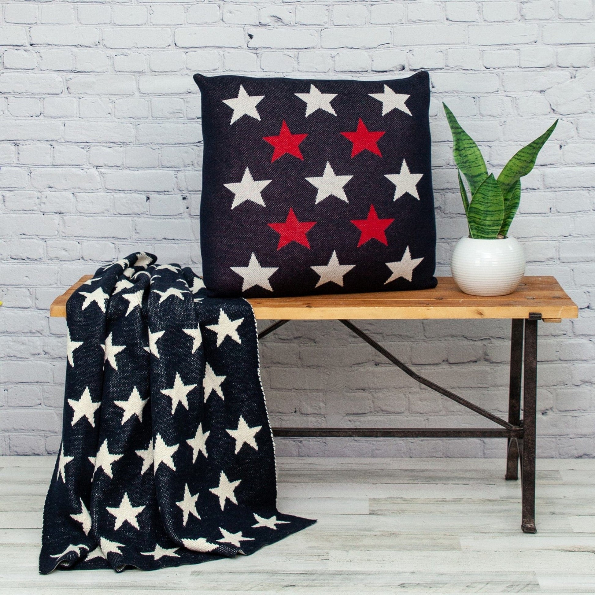 Nothing screams Americana more than the traditional American flag color theme, and this Americana Stars Throw Pillow features exactly that. Decorated on both sides, and fashionable in a denim blue with red and white this square pillow is a great look. 20” x 20” x 4”