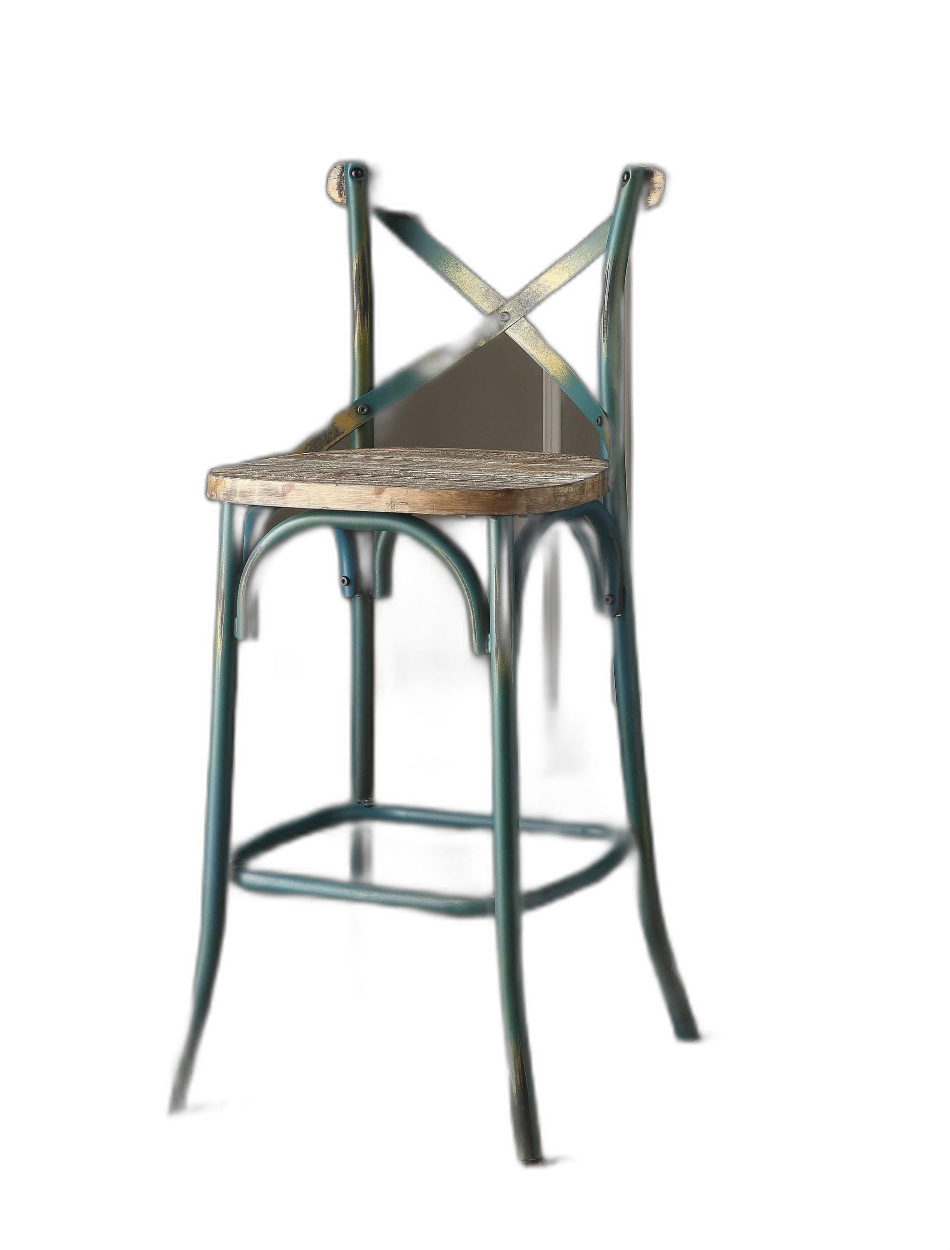 The Antique Turquoise & Oak Wood Bar Chair offer a vintage style to a bar chair. 18" X 20" X 43"