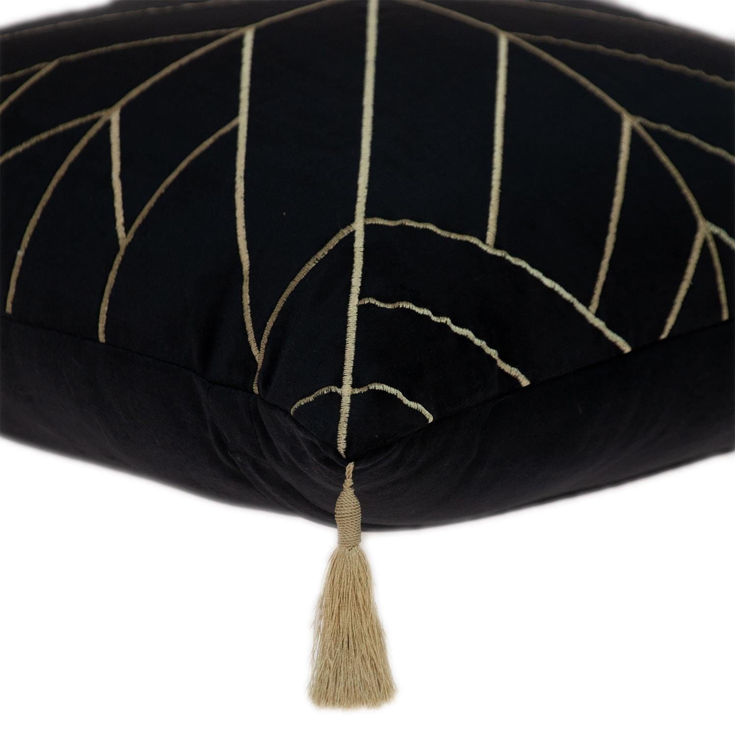 Black and Gold Geo Velvet Throw Pillow with Gold Tassels