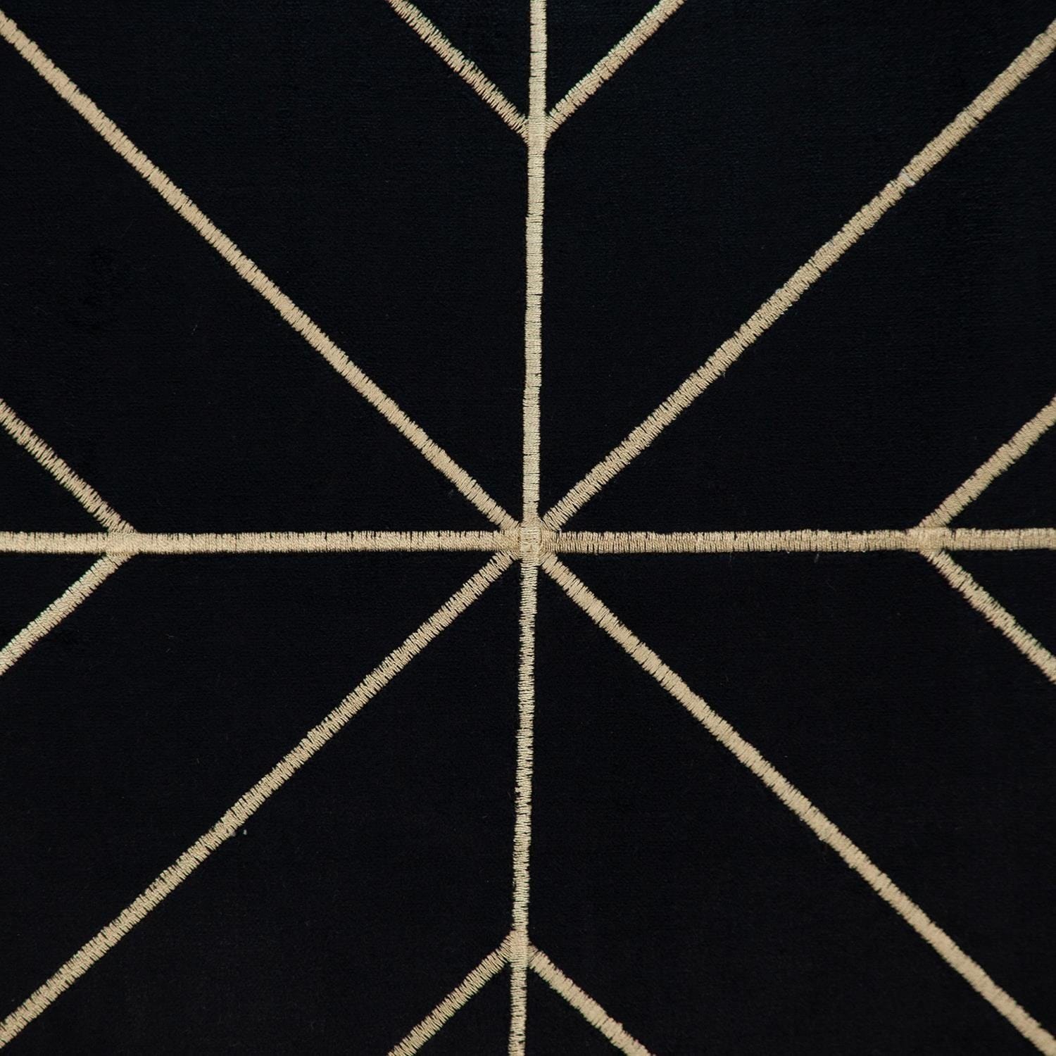 Luxury meets simplicity with the Black and Gold Geo Velvet Throw Pillow with Gold Tassels. Beautifully handcrafted from an all velvet base, the pillow gracefully evokes a sense of charm and brings forth a little drama into your diverse space. Fascinating gold geometric patterns stitched on the soft velvet leaves a mesmerizing effect while adding character to your room. Four gold tassels adorn the four corners of the pillow that enhance the plush level. Concealed on the back is a hidden zipper under a neatly designed flap, provided for easy cleaning and removal. Enliven your home by pairing this pillow with your favorite pastel shaded decors. 12" x 24" x 4"