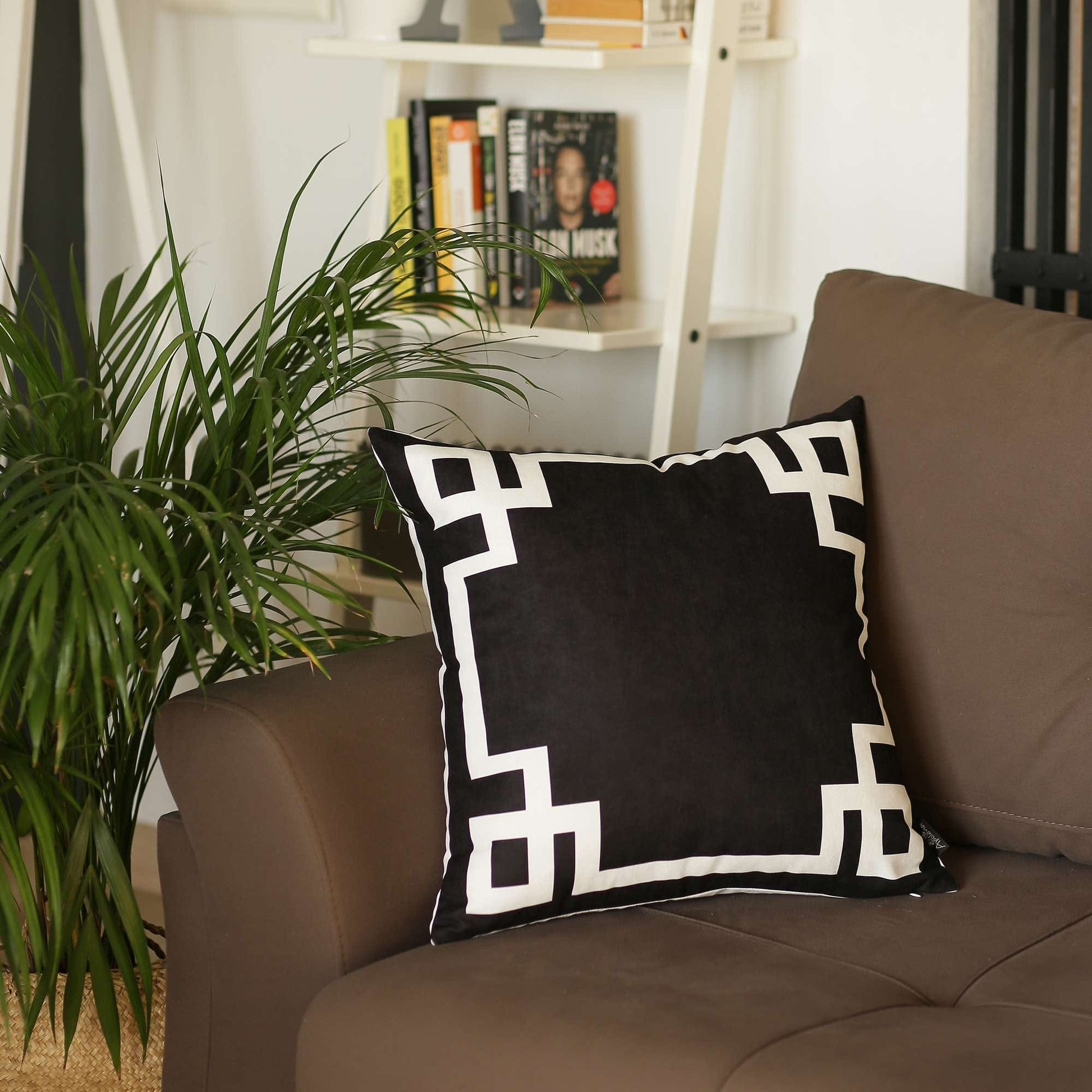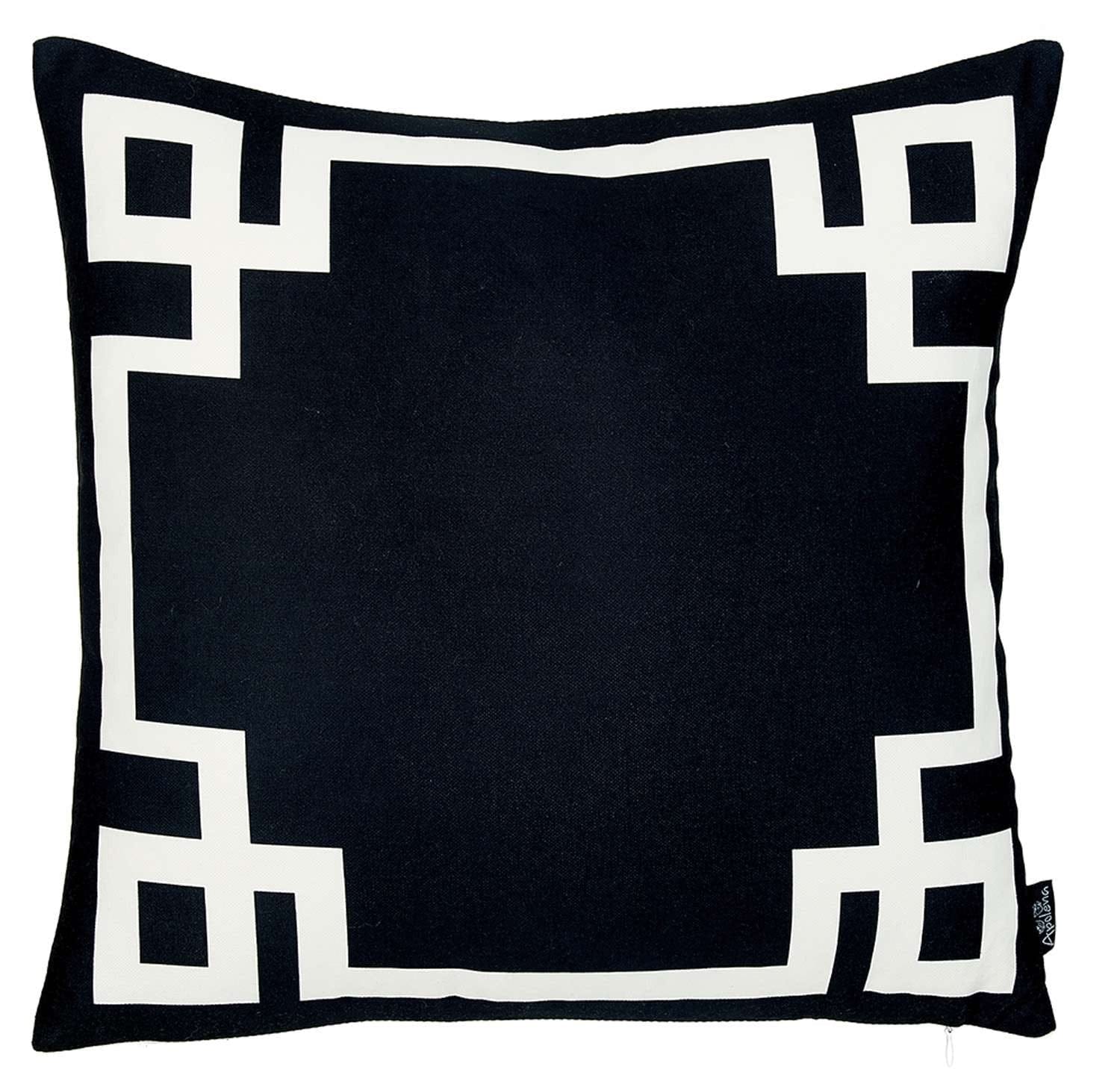 Simple yet stylish in its modern pattern and elegant palette, this Back and White Geometric Border Throw Pillow will add a sense of sophistication to your living space. Flaunting an eye-catching geometric design in white over a solid raven black base to combine style and sophistication in a compact design. It has high-quality digital printing on both sides, making it simple to place and pair with a variety of decors without worrying about whether there is a right or wrong way to display it. Made in Turkey with OEKO-TEX Standard 100 certified premium polyester fabric for quality, durability, and safety. The pillow has a concealed zipper for a clean look and seamless finish that feels smooth and luxurious to the touch, and the high-quality polyfill insert provides maximum comfort and support to your back when you lean on it. Ideal for any modern or casual home, this decorative throw pillow will be a stunning piece of décor to stand out in your living room. 18” x 18” x 1”