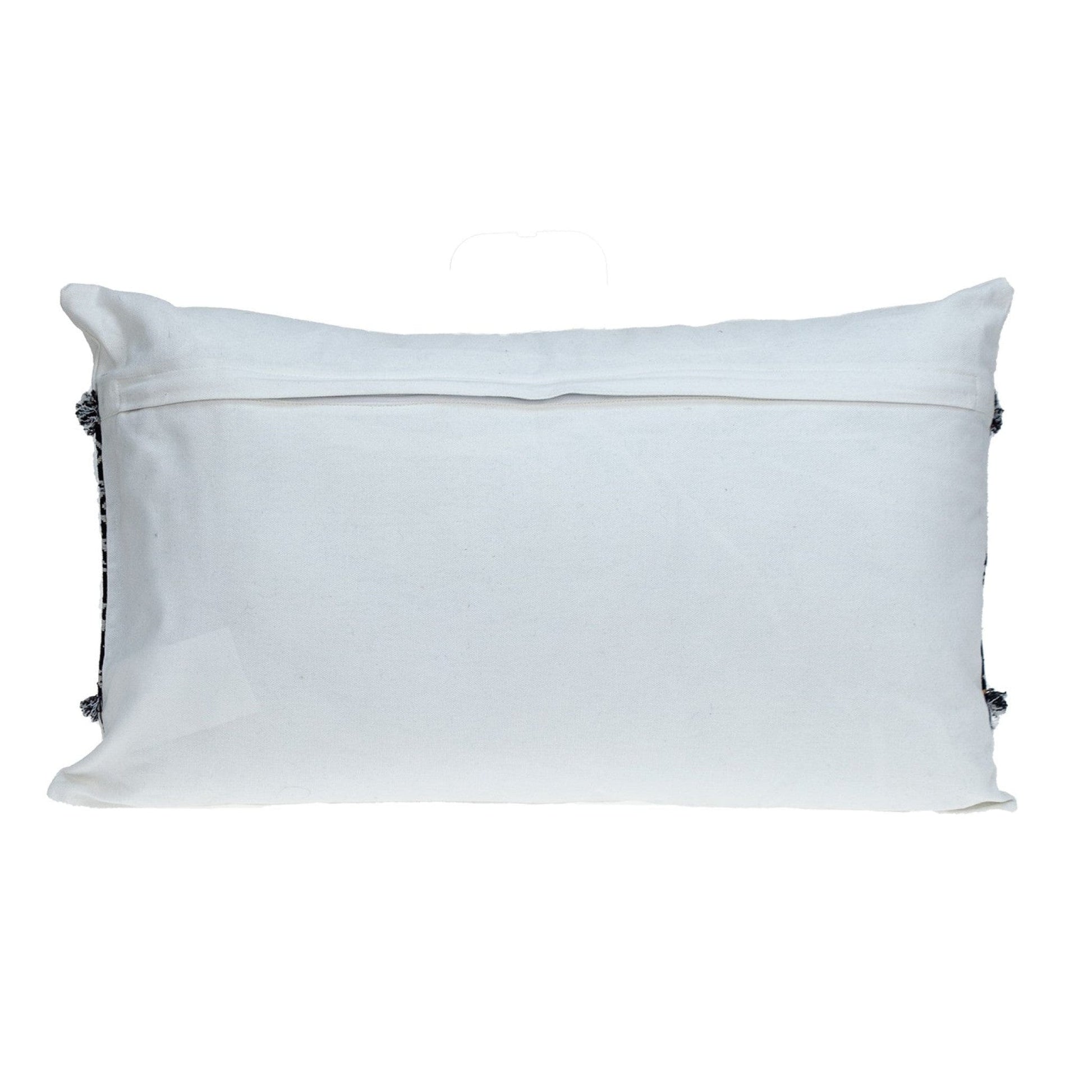 A rectangular lumbar support pillow with a highly contemporary and eye-catching design that doubles as a stylish throw pillow. The Black and White Patched Throw Pillow has a stylish rectangular geometric pattern patched against a full white body, which gives it an extraordinarily dapper look on any furniture. It is a 100% cotton rectangular-shaped pillow that offers amazing support to your lower back. 24” x 14” x 5”