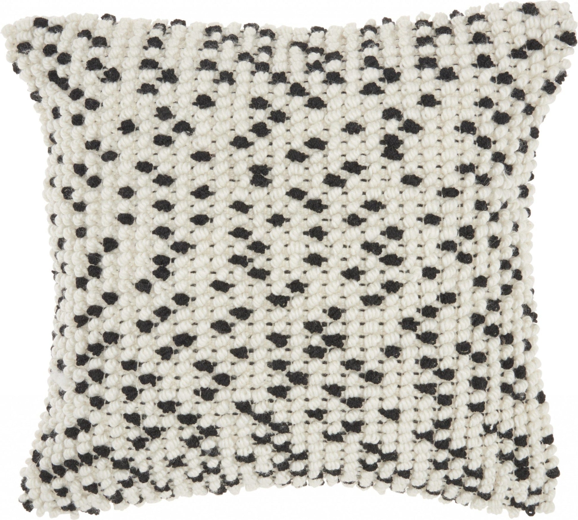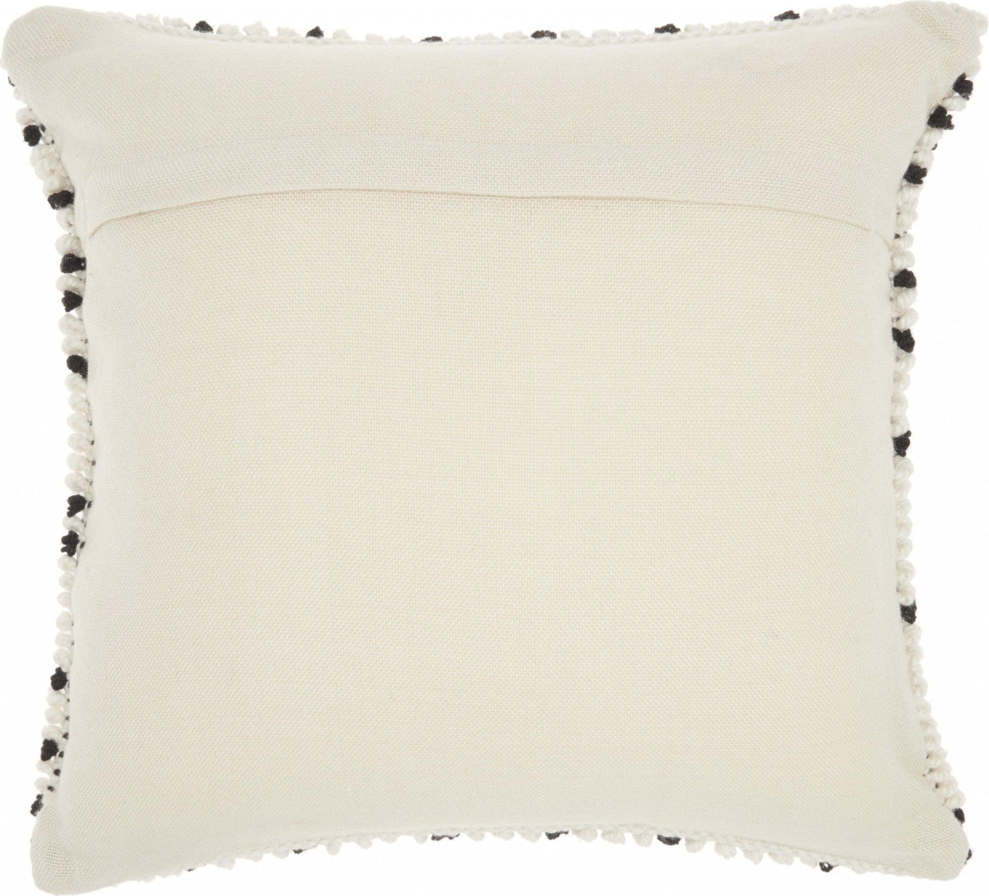 This Black Dotted Throw Pillow is the perfect way to add some comfort and style to your bed or your couch. This pillow has a square shape and is covered in a textured white and black dotted fabric. The fabric has a fluffy thread feel to it which makes it that much more comfortable to use. This white fabric has black dots in a random pattern all around the front which gives it a unique look. You can use this throw pillow to elevate the look of any seating space in your home no matter what colors or decor styles you already have because of its simple design and neutral colorway. 5" H x 18" W x 18" D
