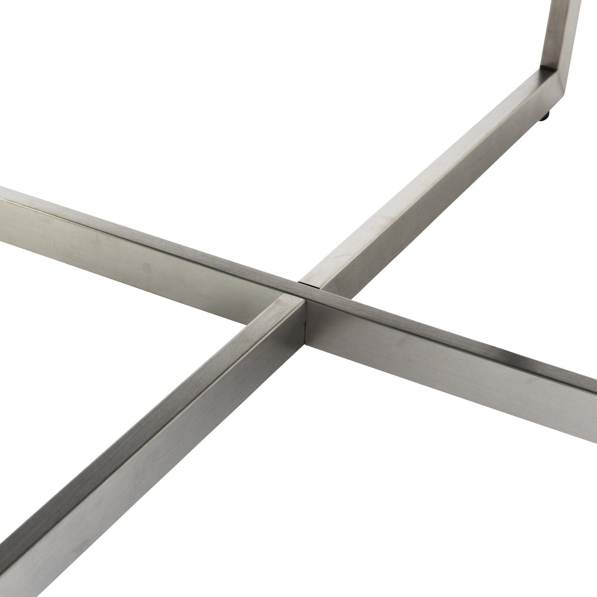 Give your living room the perfect anchor piece with this Black on Stainless Faux Marble Round Coffee Table. The geometric and minimalist base for this table is made of sturdy brushed finish stainless steel. There are small feet on each four corners to ensure stability of the table. The gorgeous round table top is made from black and white marblized laminated melamine which is not only striking but super sturdy as well. This table is simple and classy and will look great in most any contemporary or modern space. 15.75" H x 36.03" W x 36.03" D