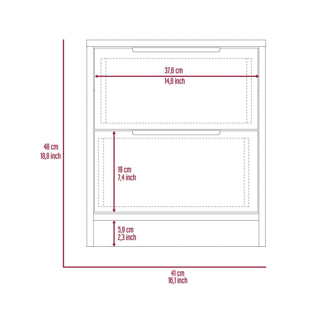 Modern design and practical styling meet to form the good-looking Black Open Compartment Two Drawer Nightstand. The two pull-out drawers with silver handles and one open compartment provide lots of storage to help keep your space neat and organized. Versatile in use this nightstand would also work as a great storage end table in the living room on either side of the sofa or anywhere else you need fashionable and stylish storage. 19.9" x 15.7" x 14.7".