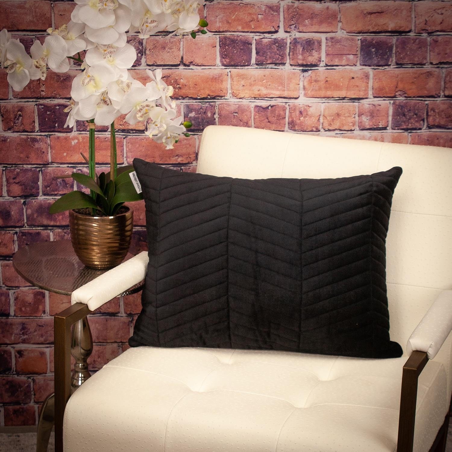 Black Quilted Velvet Zig Zag Decorative Lumbar Pillow