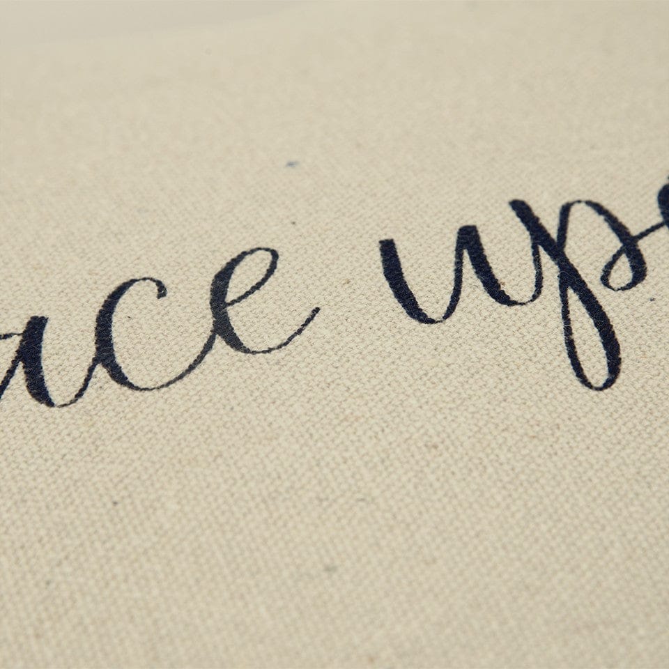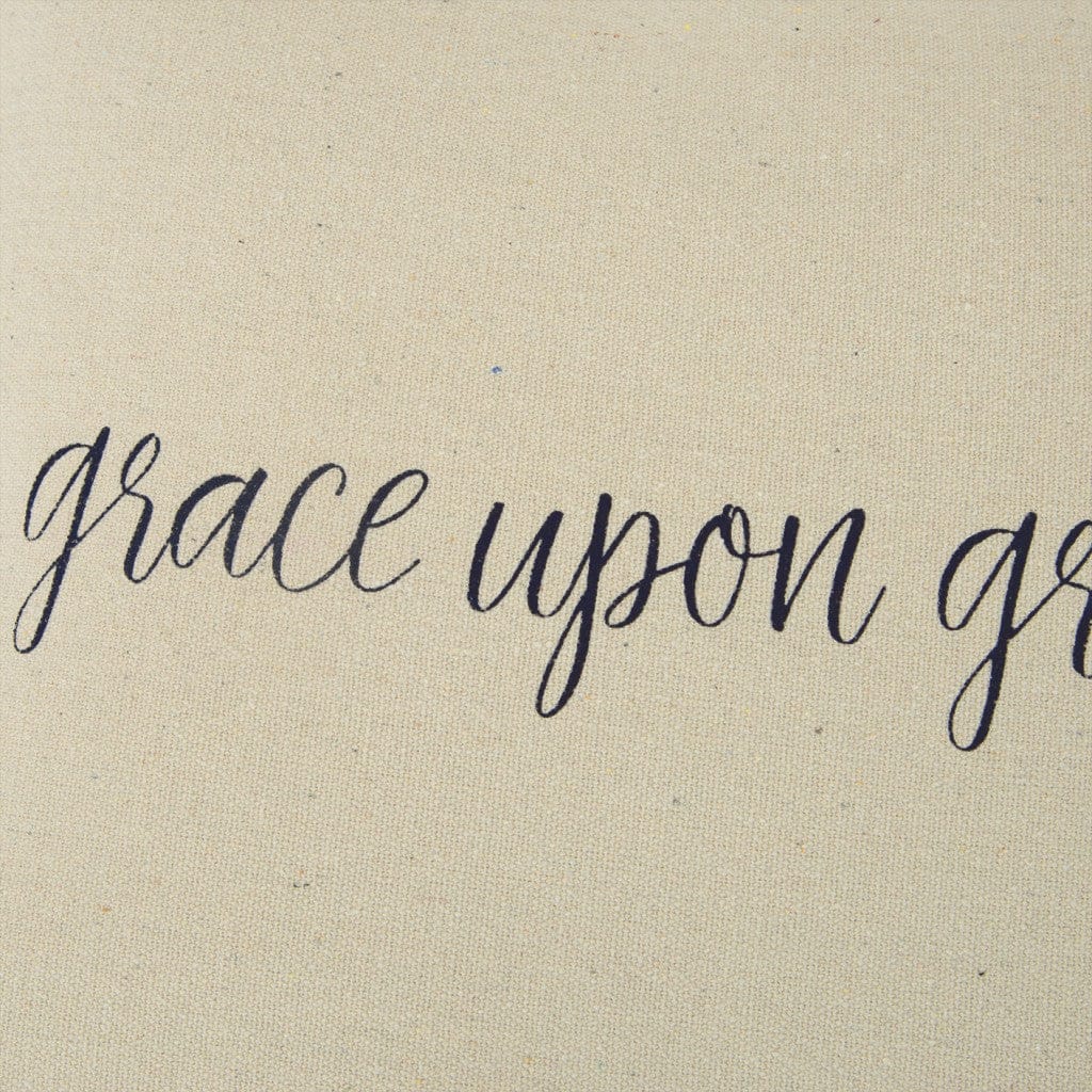 Visually simple and stylish with a classic color palette, this Black Taupe Canvas Grace Throw Pillow is meant to blend in perfectly with your modern home. Demonstrating the words ‘grace upon grace’ in soft black over a taupe-colored background for visual intrigue while encouraging the practice of forgiveness and grace in our acts. Made from recycled cotton canvas with a lightly textured surface for a luxurious feel on the touch while the knife edging gives a modern appeal to the pillow. The pillow features a solid matching back with a hidden zipper closure for convenience. Sophisticatedly simple with a sentiment to display grace, this decorative throw pillow is a classy accent piece to place against bold or neutral decors. 20” x 20” x 6.25”