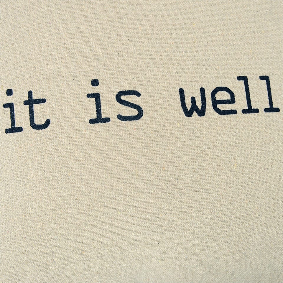 The modern aesthetic of this Black Taupe Canvas It Is Well Throw Pillow will perfectly balance your interior décor and breathe positive energy into your home. Featuring a clean font sentiment in black that says ‘it is well’, the taupe background is highlighted with a stylish edge. Crafted from recycled cotton canvas which is durable to last for a long time and the knife edges give the pillow clean corners for a polished look. The solid matching back comes with a hidden zipper closure, making the pillow easy to fill and clean. Super soft and cozy, the decorative pillow with its neutral hues and printed sentiment is sure to add personality to your living room. 20” x 20” x 6.25”
