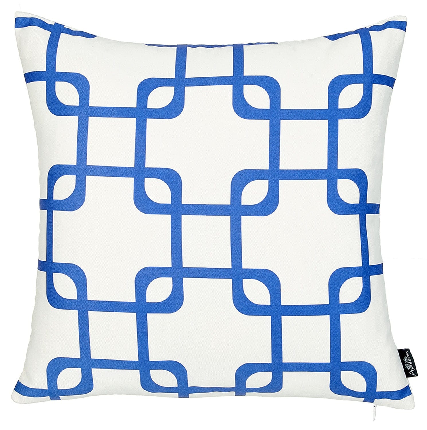 Blue And White Geometric Squares Decorative Throw Pillow Cover