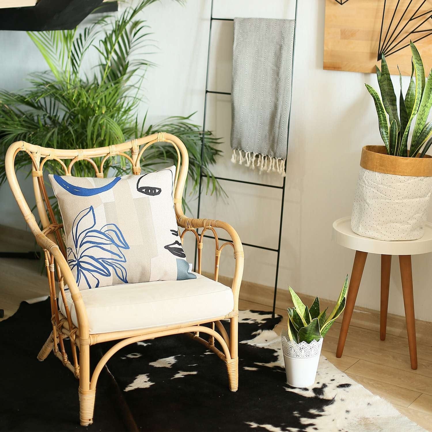 Bring a new dimension of style and exquisiteness to your contemporary interior with this Blue and White Half Face Decorative Throw Pillow that features a sophisticated color palette. The alluring pillow hosts a beautiful half-face mural with bold blue floral elements on opposing sides with shades of ivory as the base to produce a stunning visual experience. The beautiful linework is made to last with the help of Turkish craftsmanship combined with OEKO-TEX Standard 100 certified polyester fabric. The look comes to life due to the hidden zipper closure that makes the whole pillow feel seamless, and the soft cotton insert adds to the fluffiness and comfort. This handmade pillow is brought to life most invitingly when placed against dark or neutral color schemes in a modern or boho chic home. 18” x 18” x 1”