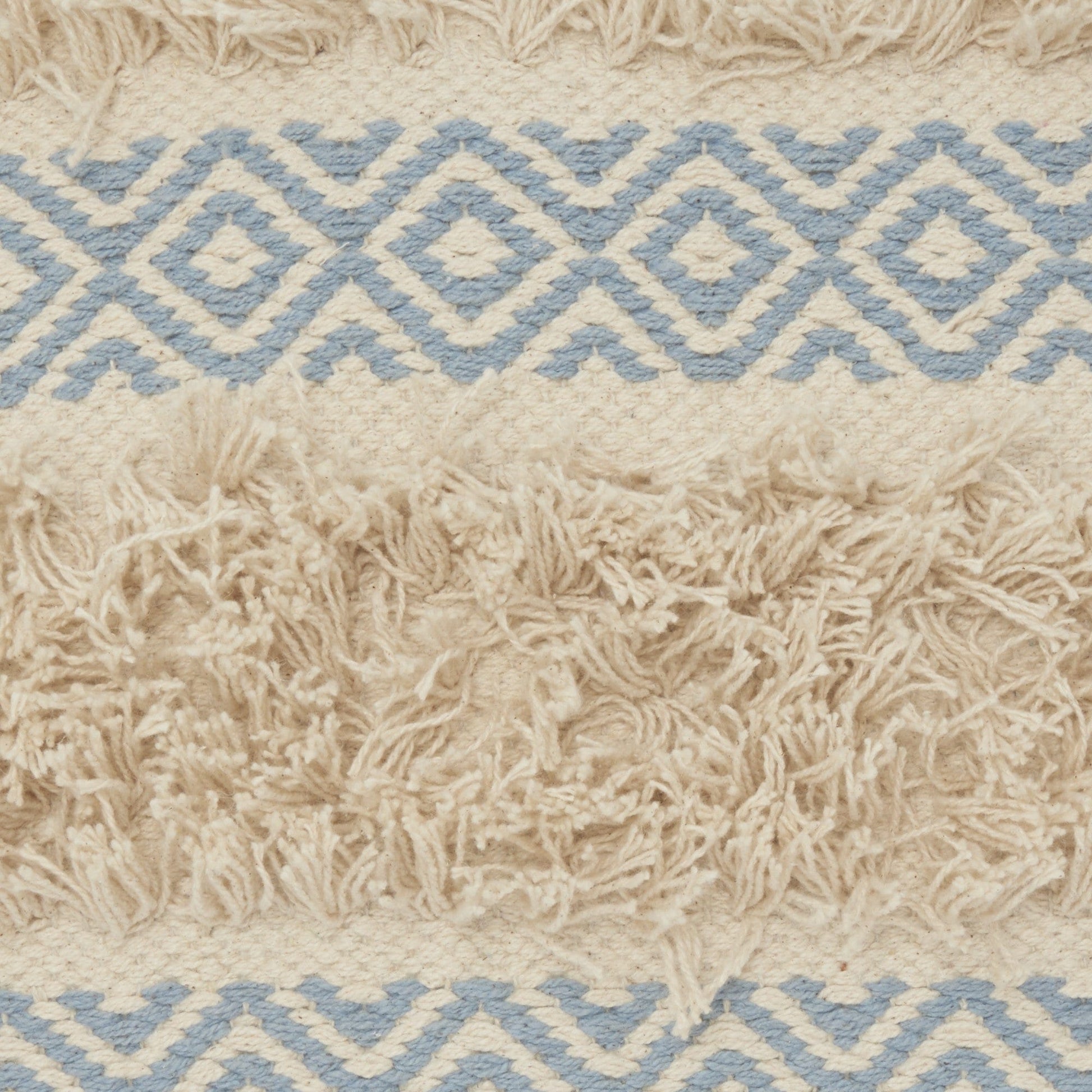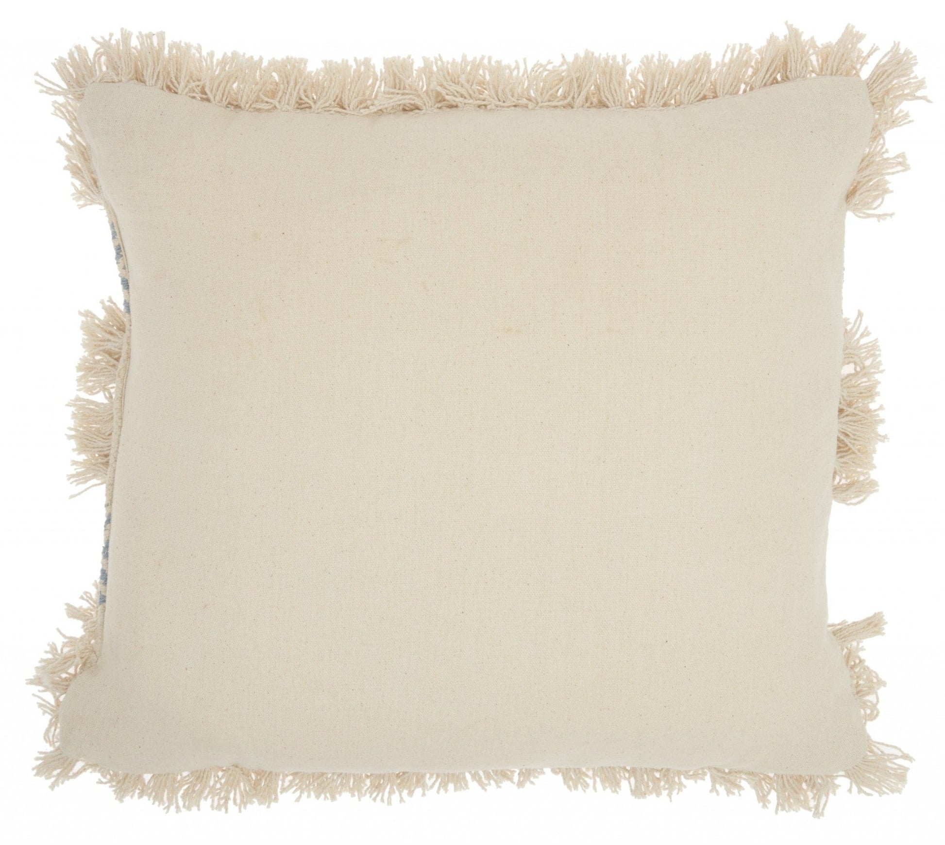 This Ocean Blue Diamond Patterned Throw Pillow is the physical embodiment of fun, funk, and fluff. The ingenious design does well in shining a warm light of comfort and coziness to any space it is taken to. The super-soft fringes and striped diamond pattern layer give the best of both worlds being comfortable and engaging. The look is made to be long-lasting due to the implementation of 100% cotton fabric throughout the body of the pillow. Express your creativity and bohemian styling in the most elaborate and fun way with this simple add-on that is bound to make your space feel warm and happy. 18” x 18” x 5”