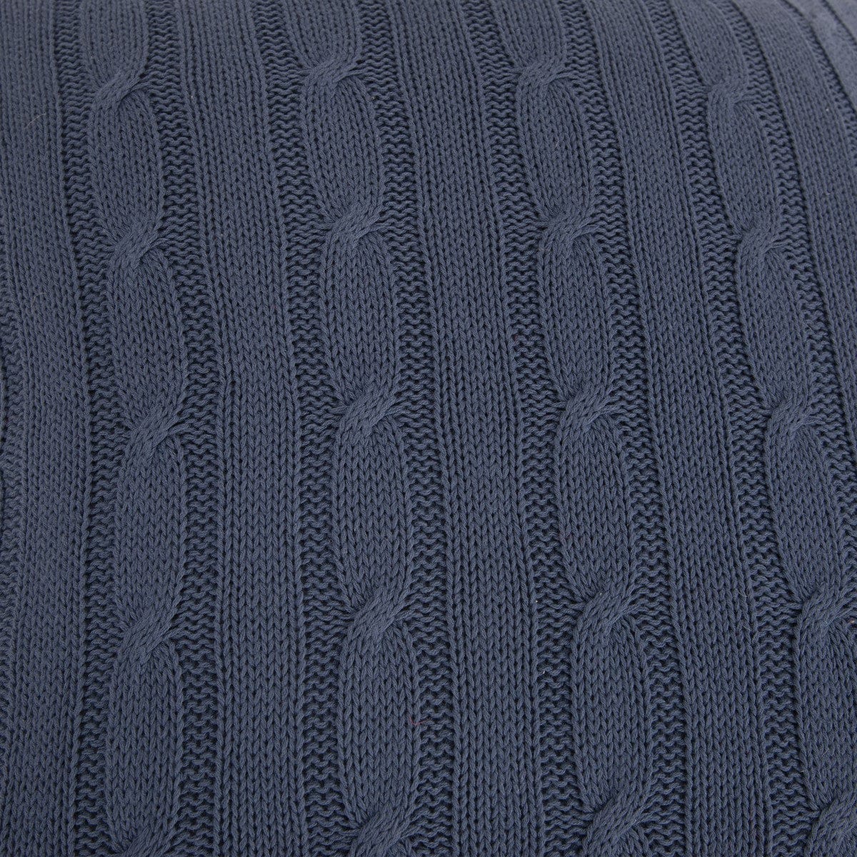 The delightful tone and texture of this Blue Knit Striped Pattern Throw Pillow make it an exemplary representation of trend and tradition combined in utmost simplicity. The comet blue base features a wonderful knit pattern in a vertical striped fashion, emphasizing a sophisticated look to work well with modern or casual decors. The amazing textural pattern is featured in both front and back for a unified look while the wooden button detailing adds a rustic charm to the piece. Crafted from the softest cotton fabric, this down-filled pillow is super fluffy and cuddly to make you comfortable on the couch or bed. Thanks to the knife edging for the crisp and polished look that gives the pillow a stylish modern appeal. The pillow looks absolutely fashionable on both sides, allowing you to flaunt the pillow according to your taste of style. 18” x 18” x 6.25”