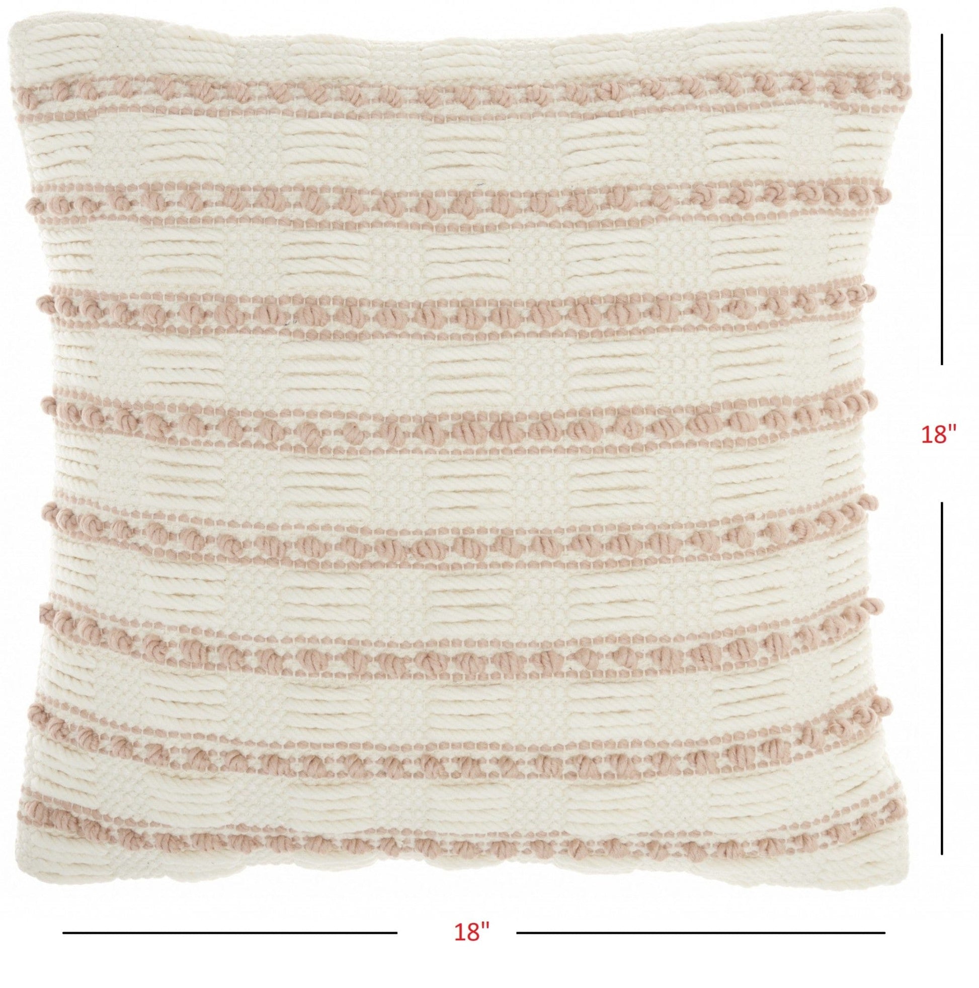Brighten up your bedroom or living area with this Blush and Ivory Textured Stripes Throw Pillow which is bound to seamlessly add to your contemporary and casual decor. The textured stripes are meant to deliver an amiable and welcoming feel while being playful to touch and hold. The texture and feel aren’t going anywhere over the years due to the use of 60% cotton and 40% polyester fabric that is also easy to wash. The blush and ivory tones are made to mend well with pastel colors or be eye-catching in darker spaces in an alluring way. 18” x 18” x 5"