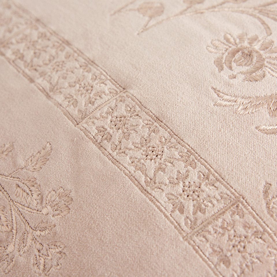 Bring an element of grace and elegance into your living space with this eye-soothing Blush Pink Floral Textured Reversible Throw Pillow. The subtle blush pink pillow has two distinctive sides, with one side featuring textured floral and geometric work woven on a soft cotton base, while the reverse side is a solid cotton velvet surface that feels smooth and luxurious on the touch. The pillow is beautifully welted to give a definite shape and outline with a hidden zipper closure at the bottom for ease of cleaning. Adorn your modern home with this soft-toned decorative throw pillow that will enhance the aesthetics of your home without being too loud. 20” x 20” x 6.25”