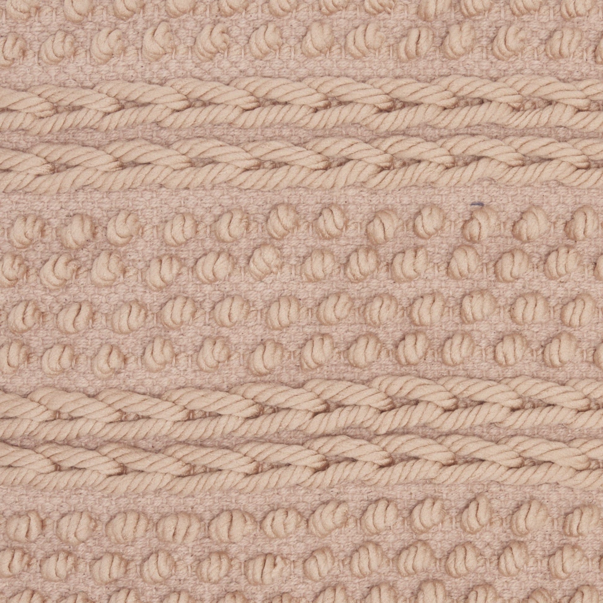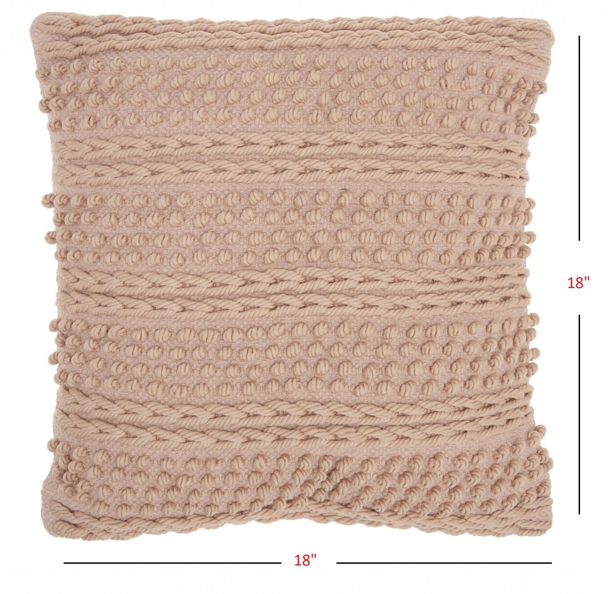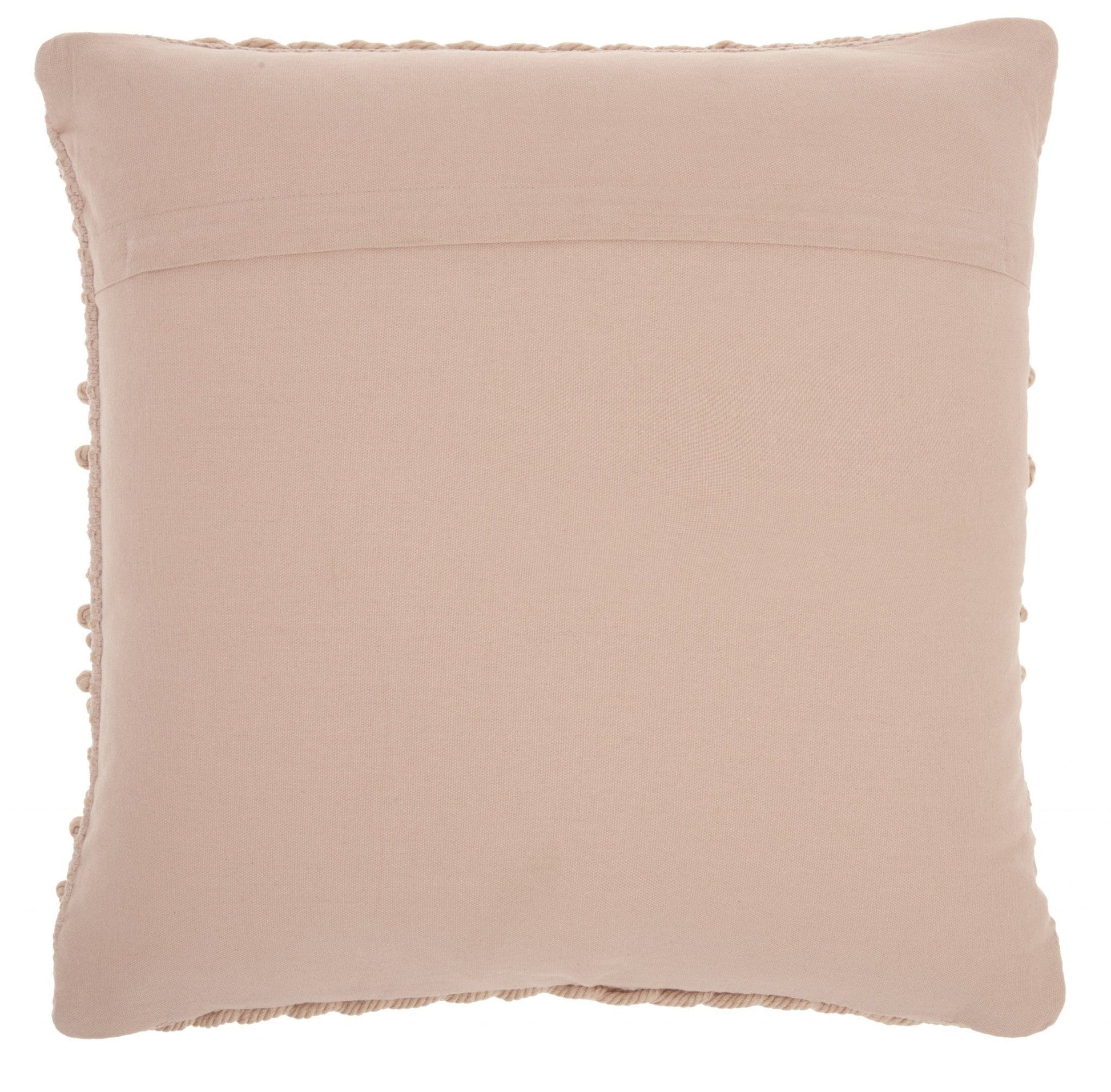 Set a calm and relaxing tone into your living space with this Blush Pink Textured Dots and Stripes Throw Pillow that is bound to upgrade the aesthetics of any casual or contemporary setting. Featuring a single hued color palette, this pillow is designed in a classic textural pattern with braided stripes and raised pom-pom to create a fun yet luxurious appeal to the entire piece. Carefully crafted with 60% cotton and 40% polyester, this decorative pillow is not only durable and easy to clean but also feels super soft on the touch. This classy and cozy throw pillow will serve as a great ornate accent for your bed, sofa, or chair while harmonizing with the modern decors of your interior. 18” x 18” x 5”