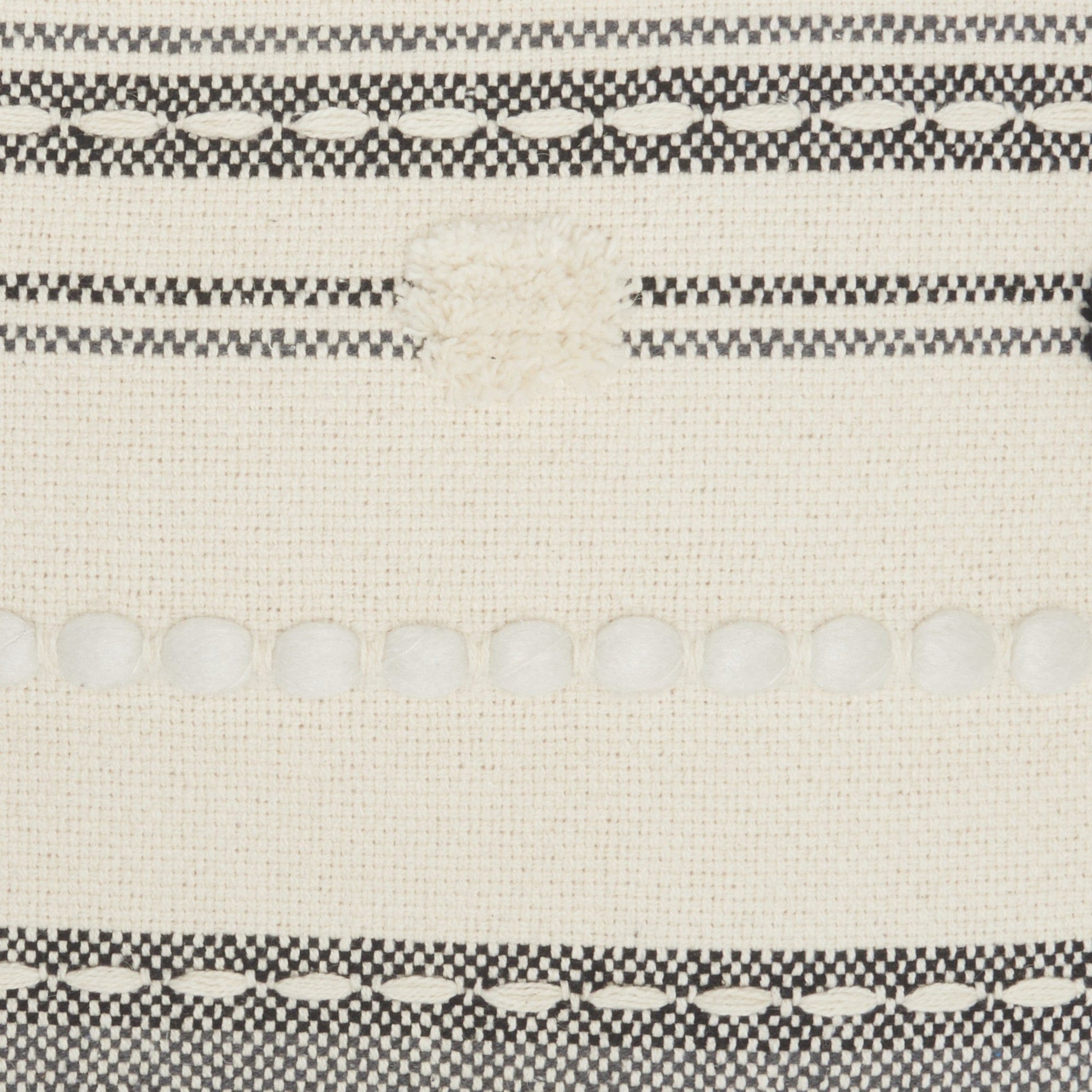 Contemporary and fun, this Boho Handcrafted Black Ivory Accent Throw Pillow will help bring a bohemian, chic style to your interior, offering plush comfort and easy decorating. The fun bohemian pom pom textured woven ribbed fabrication of this pillow makes it a unique item that is made with skill and professionalism. The added feature of a zipper closure allows for easy cleaning of the pillow case, allowing for easy care. The rich color of Black Ivory makes for an effortlessly chic pillow that can suit any sofa, chair or bedding. 5" x 20" x20"