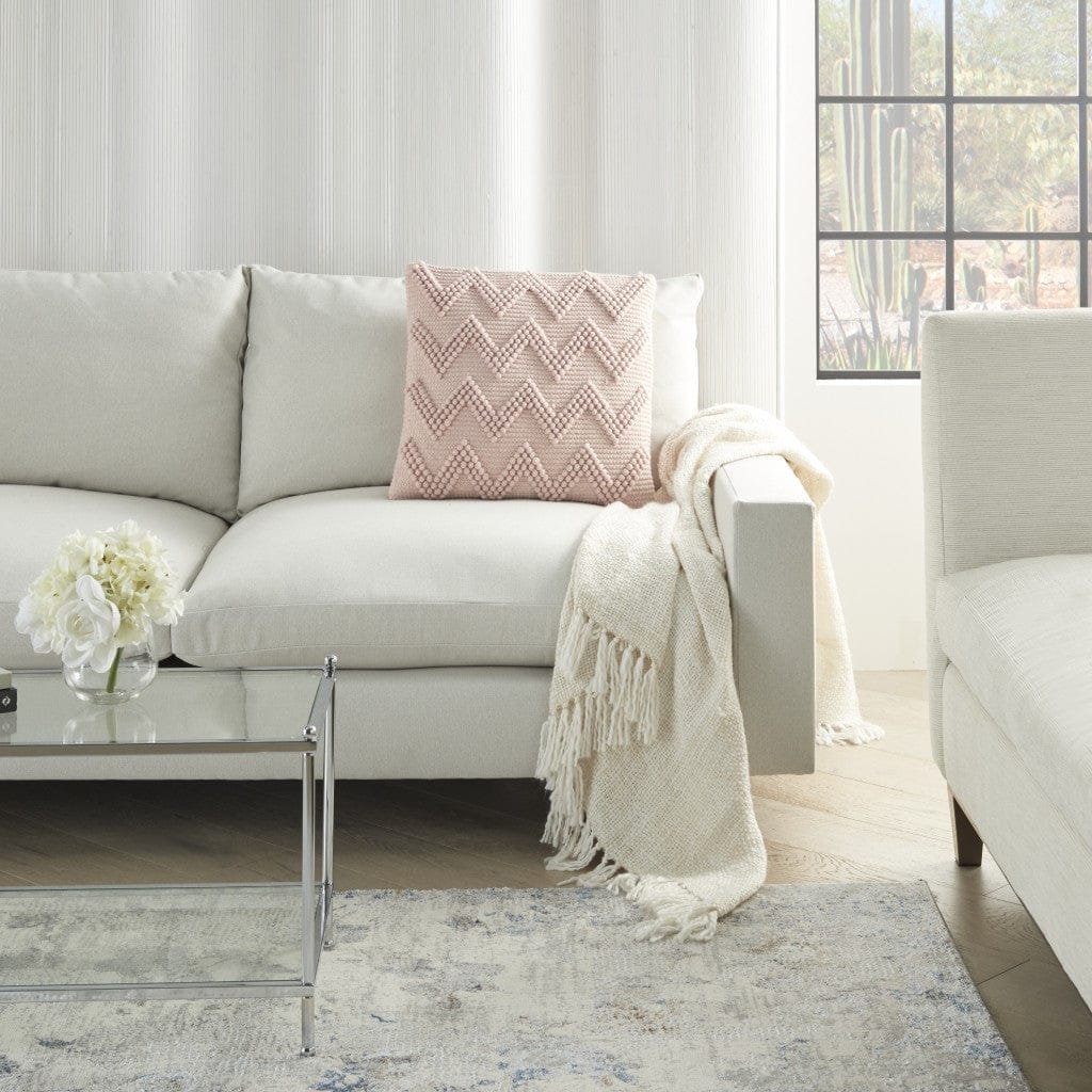 Calming vibes abound with this Boho Mauve Rose Textural Chevron Throw Pillow. This cool looking pillow is a great way to rest your head, support your back, lift your feet, or just to use as a cool decorative accent. There are textural loops on the front woven panel in a chevron design. The solid color back features a flap with hidden zipper closure. The pale mauve rose color is calming and neutral. Generous in size at 20" x 20" x 6" this pillow is a great find.