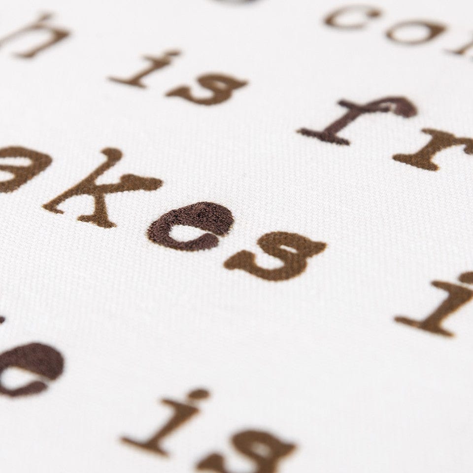 Express your unparalleled love for chocolates and yet everlasting deliciousness with this Brown and White Chocolate Is A Salad Throw Pillow in your home. The heartfelt sentiment will put a smile on your guests' faces by justifying their love of chocolate with a humorous reference to a salad. Beautifully printed in chocolate brown with embroidered accents over a crisp white background, the pillow exudes a sense of sweet delight, making this piece a treat to the eyes. The contrast brown welting frames the pillow for a clean look. Made from cotton duck fabric to ensure long-lasting durability with a smooth feel on the touch while the cotton sheeting back bears a concealed zipper for convenience. Chocolate lovers will rush to get their hands on this throw pillow to decorate their living space. 20” x 20” x 6.25”