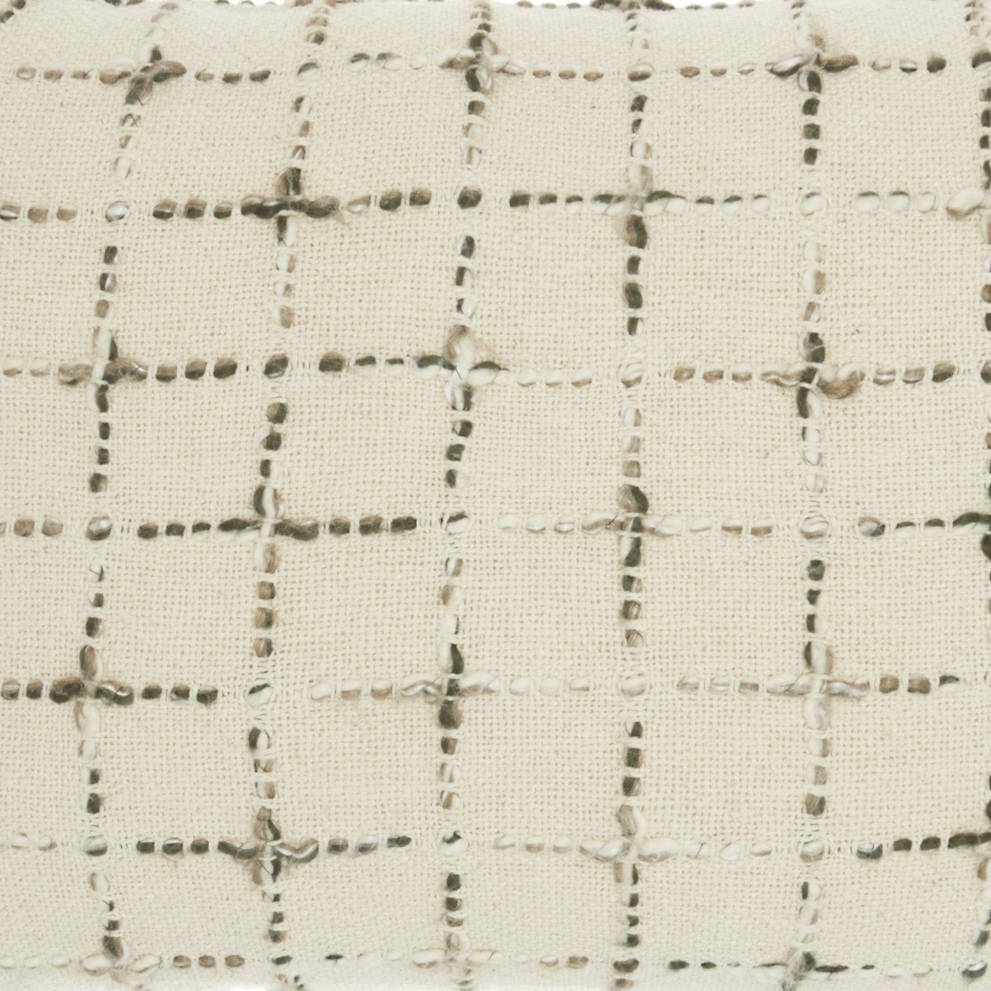 With this Brown and White Grid Detail Lumbar Pillow you can add a touch of natural design to your home without worrying about any clashing colors or design aesthetics. This pillow is covered in a soft and luxurious fabric which has a grid pattern on it. The grid pattern has small squares which are lined with slight swatches of different shades of brown. There is extra stitch detailing on the surface as well to add a textural element. The tassels on either side are braided and are made of threads that have the same white and brown colorway. A great way to have unmatched comfort and complete lumbar support, this pillow will look great on the bed, on the couch, or any chair you have in your home. 5" H x 14" W x 20" D