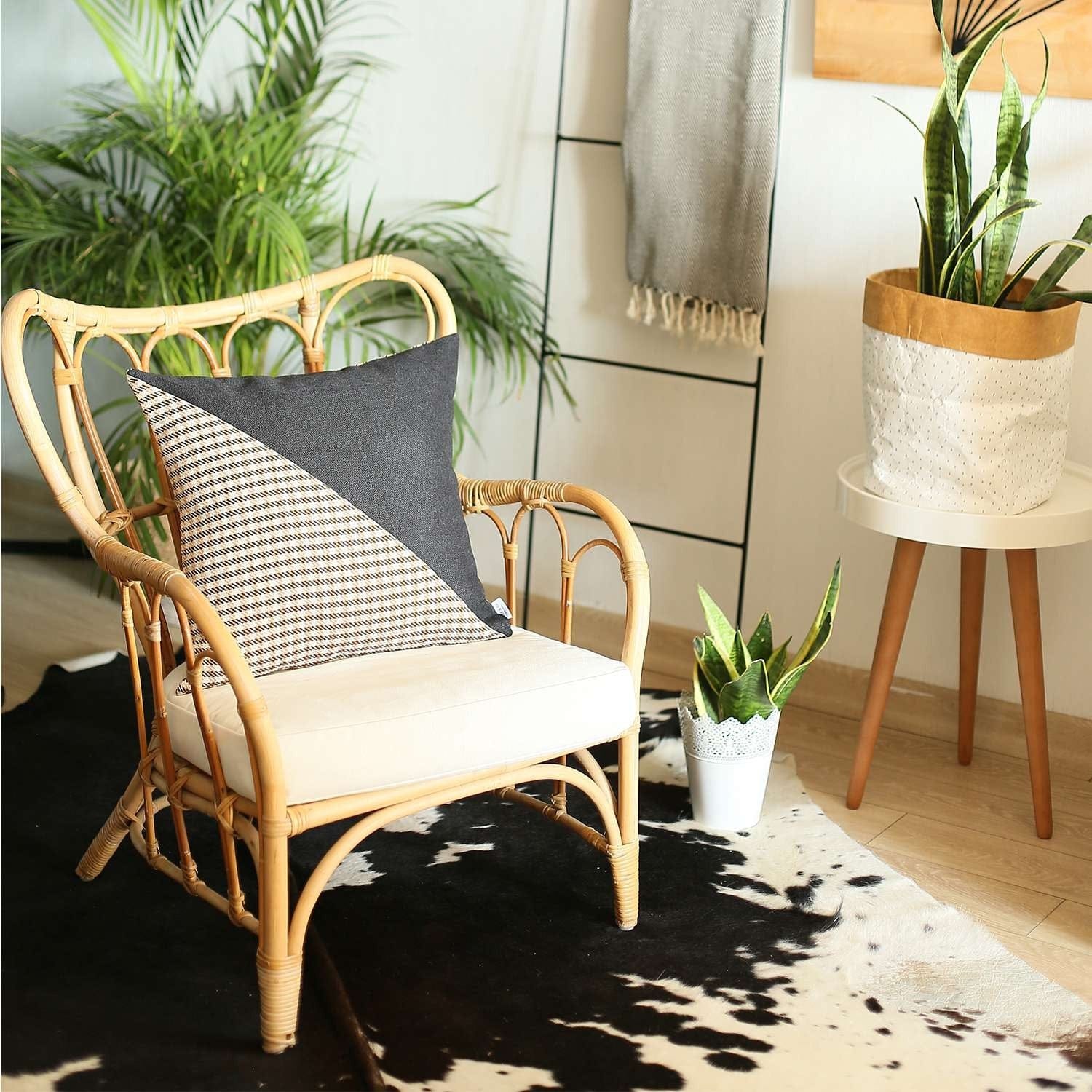 Embracing the sophistication of modern styling, this Brown Houndstooth Modern Decorative Throw Pillow will tie together the aesthetics of your living space with a stylish impression. Made in Turkey with durable polyester fabric which is OEKO-TEX Standard 100 certified to ensure product safety and optimum quality. The fabric should only be spot cleaned to keep its pristine look for years to come. Featuring the houndstooth checkered pattern in brown and white diagonally separated from the solid charcoal black end to create visual intrigue. Made to feel soft and seamless on the touch, the hidden zipper closure all around does the trick while the soft poly insert contributes to the fluffy look and cozy feel. Place this stylish throw pillow on the sofa, couch, or sitting area and it will add a modern-classic vibe to the room. 18” x 18” x 1”