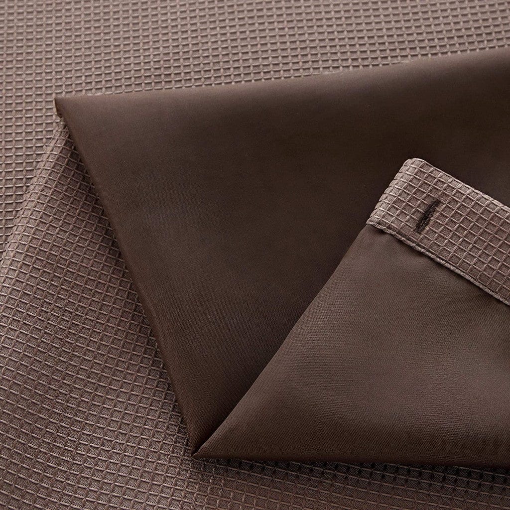 Standing out in fashion and function, this Brown Modern Grid Shower Curtain and Liner Set will be an alluring piece of decorative accent for your bathroom space. When combined with crispy white bathroom decors, the chocolate brown tone of the curtain adds warmth and depth to the shower area while creating a bold and rich look. This easy-to-clean cotton shower curtain comes with a liner that keeps water in the tub rather than splashing outside the shower area while preventing mildew on the curtains. You can seamlessly attach the liner to the curtain when needed and snap it off for easy cleaning. Bring home this luxurious shower curtain and liner set to enhance the aesthetics of your contemporary bathroom space with style and grace. 70” x 72”