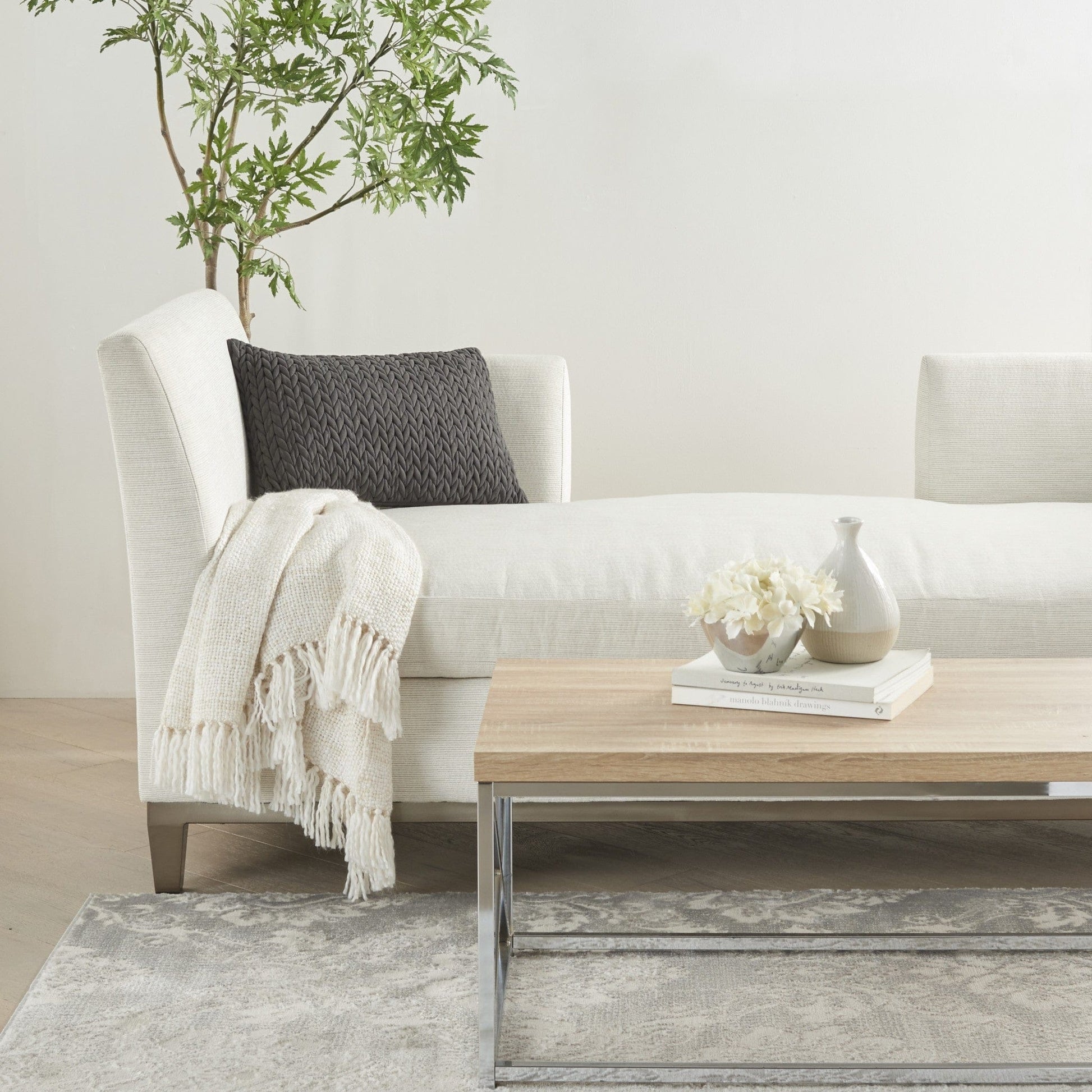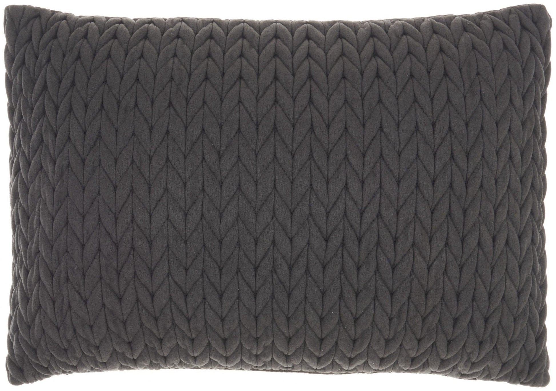 Invoke a sense of comfort, style, and elegance in your modern minimalistic decor with this trendy and soft solid Charcoal Chunky Braid Lumbar Pillow. The braided front is essential in delivering a new layer to the whole experience. Whereas with the aid of the 100% cotton fabric, longevity and ease in cleaning are ensured. The bold charcoal color is meant to stand out among more neutral and soft colors giving the whole space a sleek and inviting look. Pursue new progressive and creative spaces with staying true to high quality with this elegant piece. 14” x 20”x 5"