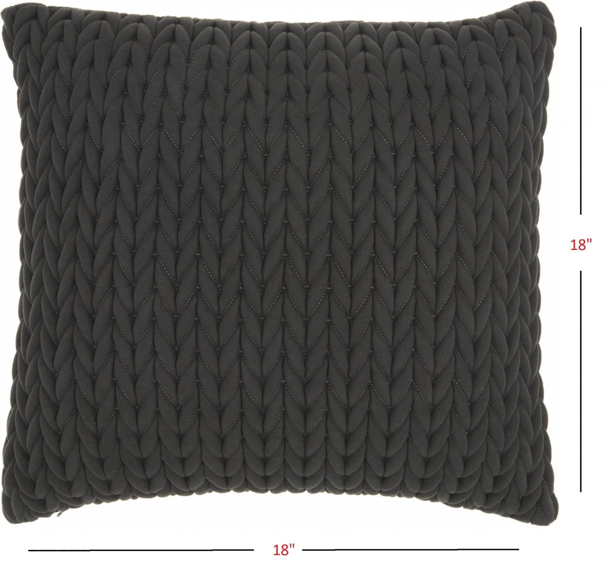 Invoke a sense of comfort, style, and elegance in your modern minimalistic decor with this trendy and soft solid Charcoal Chunky Braid Square Throw Pillow. The braided front is essential in delivering a new layer to the whole experience. Whereas with the aid of the 100% cotton fabric, longevity and ease in cleaning are ensured. The bold charcoal color is meant to stand out among more neutral and soft colors giving the whole space a sleek and inviting look. Pursue new progressive and creative spaces with staying true to high quality with this elegant piece. 18” x 18” x 5”