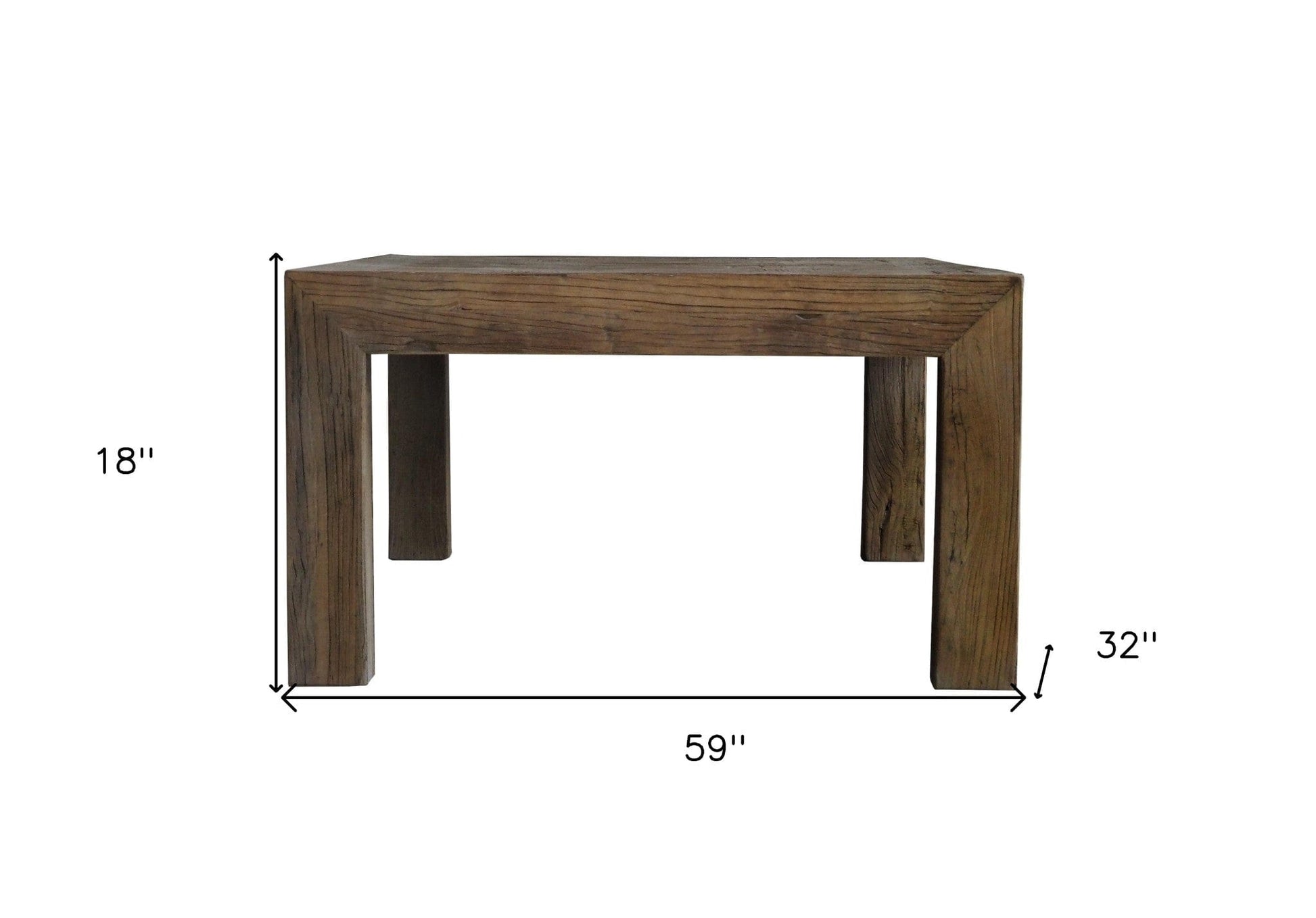 Infused with traditional charm wrapped in modern sophistication, this minimally designed Classic Rectangular Wooden Coffee Table will bring a nostalgic blend of the past and present into your home. Constructed with reclaimed elm wood in an old pine finish and a zinc top, the intricate detailing of this timeless coffee table is meant to add a sense of warmth and character to the room. Flaunting the masterful skills of the craftsmen, this piece of décor will be a practical accent to place your decorative objects or serve food items for the guests to enjoy. With brown tones of natural wooden stains, this coffee table will stand out with its old-world grace and mark its place in your traditional home. 59” x 32” x 18”