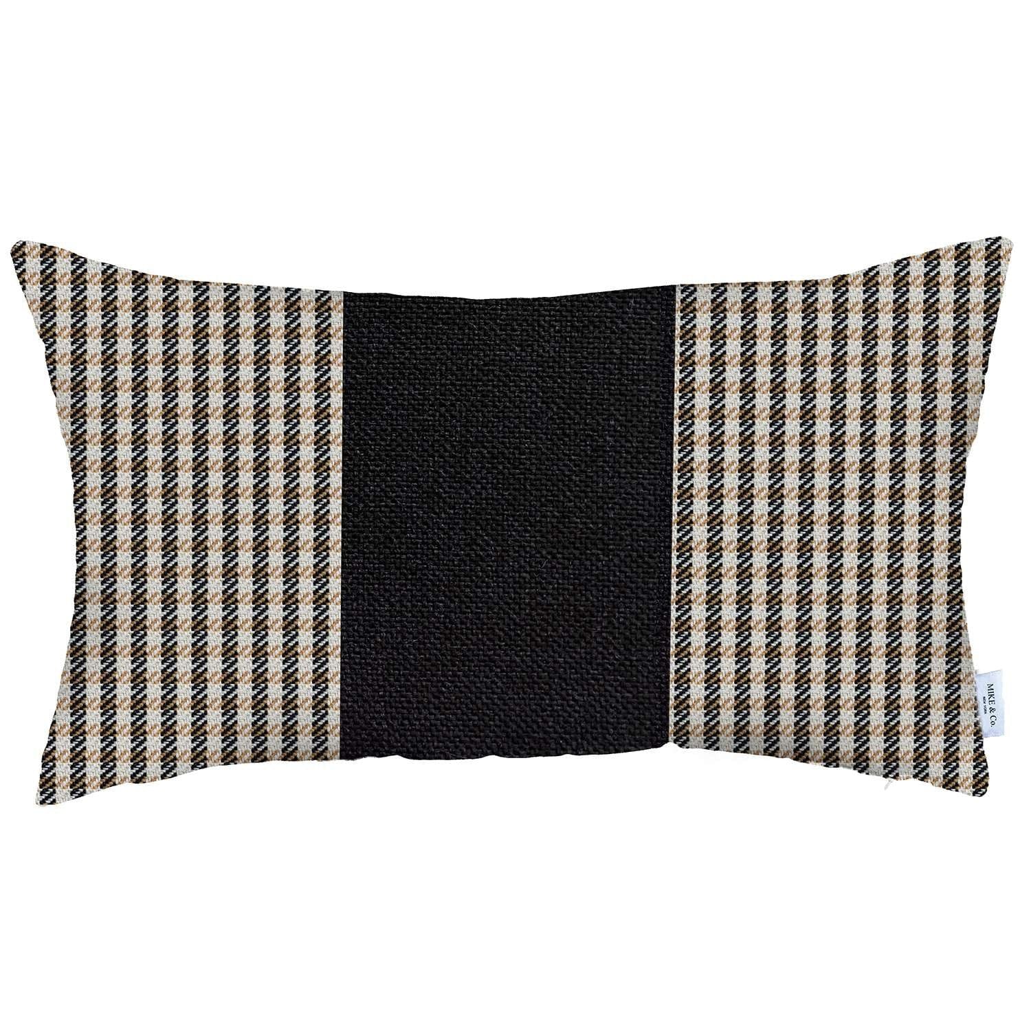 Flaunting a timeless pattern in a sophisticated color palette, this Classic Tan Houndstooth Lumbar Throw Pillow will make your modern home feel welcoming and elegant. The tan and white jacquard weaved houndstooth pattern with a matte black vertical center strip adds a stylish appeal to the piece. Skilled Turkish craftsmanship combined with OEKO-TEX Standard 100 certified polyester fabric ensures product safety and durability. To make sure this pillow stays beautiful, it only needs to be spot cleaned. Keeping the whole look seamless and uniform, the zipper is kept out of sight in its hidden closure with a soft poly filling inside. Pair this classy decorative throw pillow with a bold or neutral color scheme and it will effortlessly blend in without overpowering its surrounding. 12” x 20” x 1”