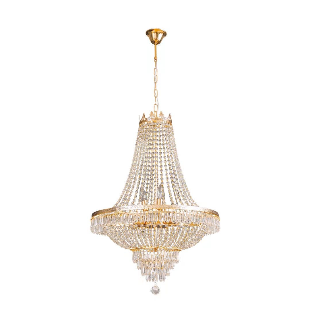 Nothing screams beauty, elegance, and wealth better than a beautiful chandelier so you know you need one, why not try this Classy Glam Gold Crystal Chandelier. This sparkly piece is reminiscent of the beautiful chandeliers that lit up palaces and castles all over the world. Made with a rich looking gold finish metal and high quality faux crystals, this incredible hanging light fixture will be a great centerpiece in your entrance foyer, living room, or dining room for years in your home. It comes with an adjustable chain for hanging and has a gold color that combines with the sparkling crystals to give the upmost in beauty and elegance. 30” x 24” x 24”