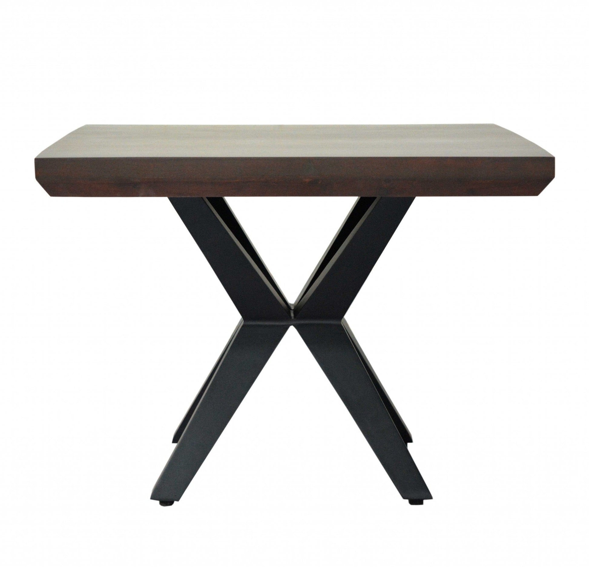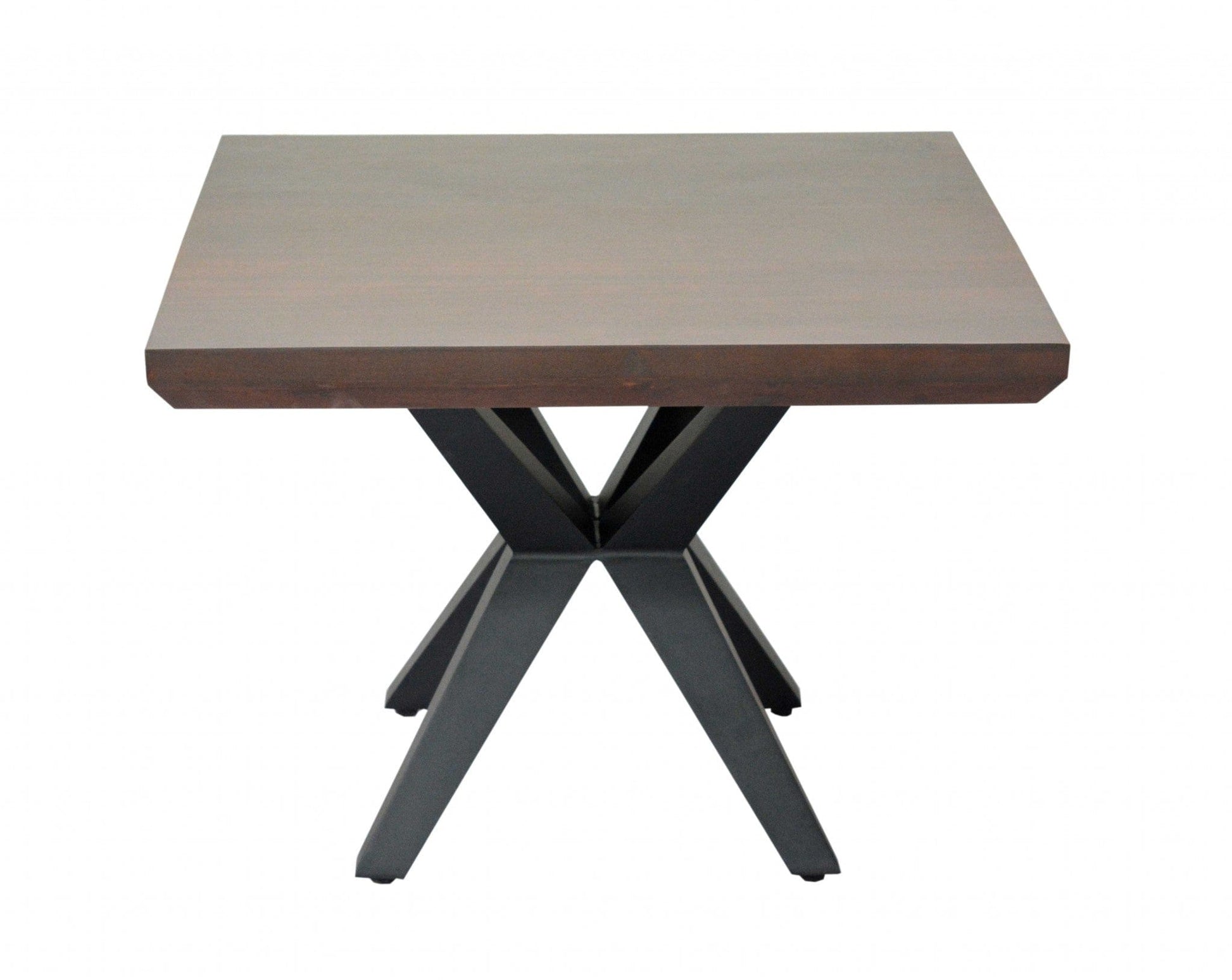 The flawless silhouette of this this Contemporary Dark Acacia Black Inverted Frame End or Side table is really something to behold. With a mixture of dark stained brown natural acacia and black finishes, this table gives your home the ultimate modern and updated feel. The solid wood top rests on the industrial and cool black inverted base that makes this table so unique and interesting. Every modern home needs a piece as disctinct as this to create a lasting impact in setting. Dimensions: 24" X 24" X 18".