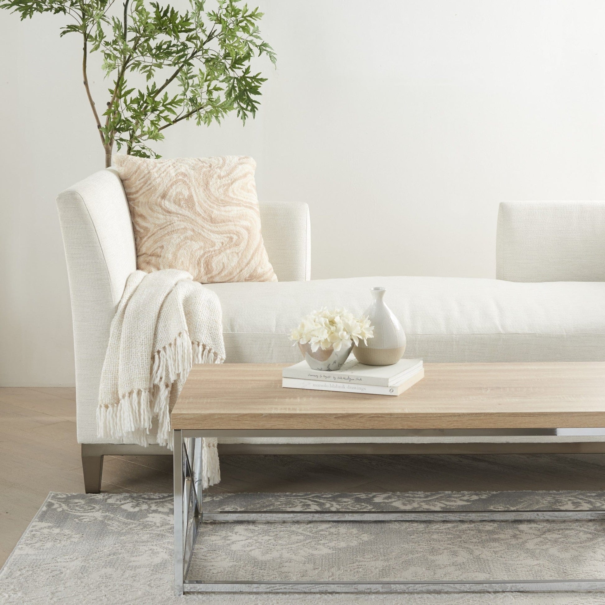 Add a touch of contemporary design mixed with unbeatable comfort to your home with this Cream Marble Patterned Throw Pillow. This pillow has a square shape and a hidden zip closure at the back for a seamless look. The fabric that covers this pillow has a stunning marble pattern on it with cream as the main color. There are different shades of cream and white that act as veining and add depth and dimension to the overall look. You can use this minimal pillow anywhere in your home no matter what colors or decor styles you already have. Elevate the look of your bed, your couch, or your favorite chair with this throw pillow. 5" H x 20" W x 20" D