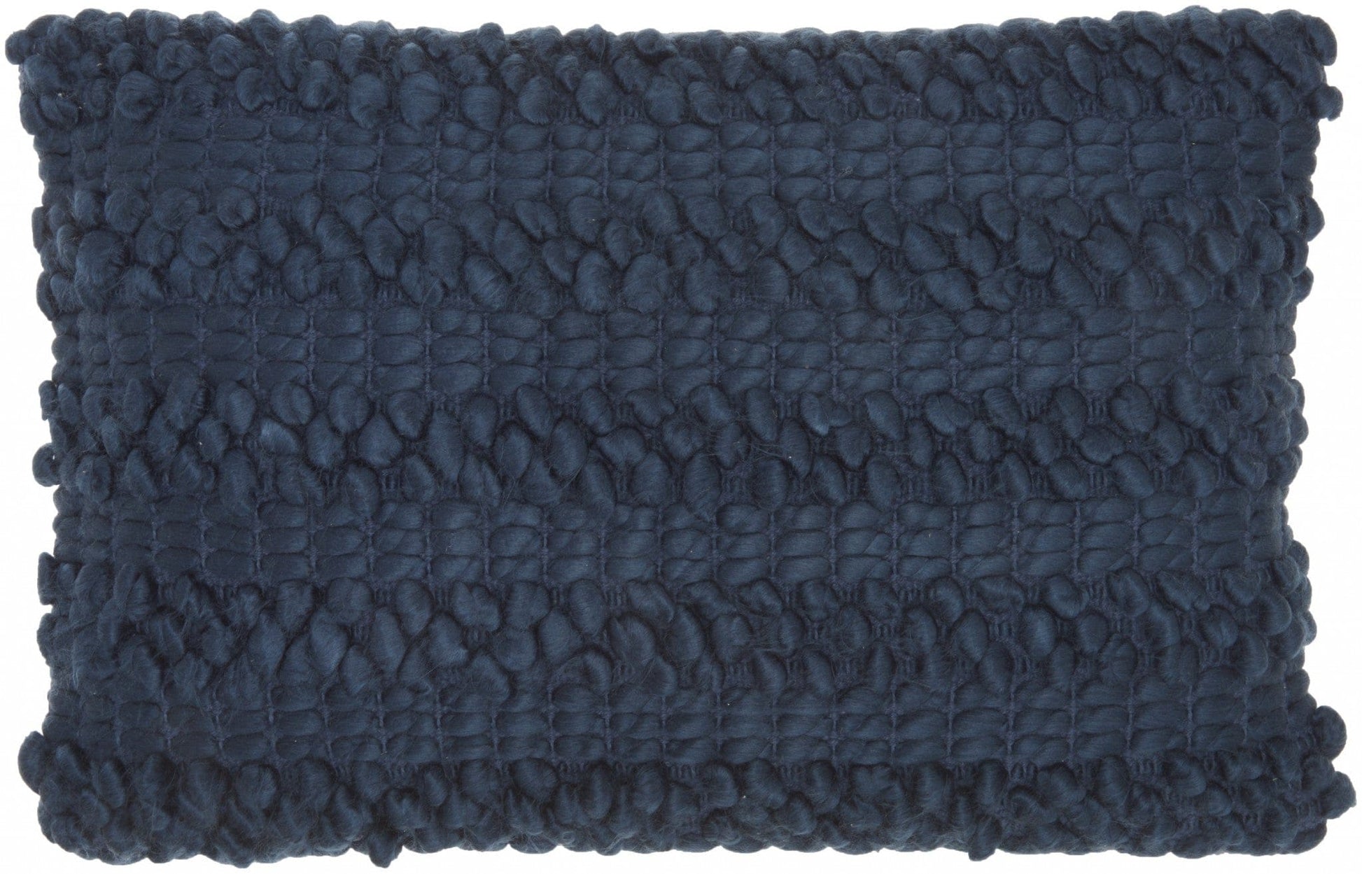 Add a touch of unique design and comfort to any seating space in your home with this Dark Blue Pom-Pom Detailed Lumbar Pillow. This pillow has a rectangular shape with a hidden zip closure at the back for a seamless look. The cover is covered in a dark blue colored fabric which has a striped design on top of it. There are two designs in the stripes with one stripe with an embroidered pattern and one stripe with a textured small pop-pom pattern. These stripes alternate and give a very textured feel to the pillow. You can use this pillow anywhere in your home and it will work with any existing colors or decor style you already have, You can use this pillow to elevate the look of your bed, your couch, or your favorite chair. This lumbar pillow also provides excellent back support. 5" H x 14" W x 20" D