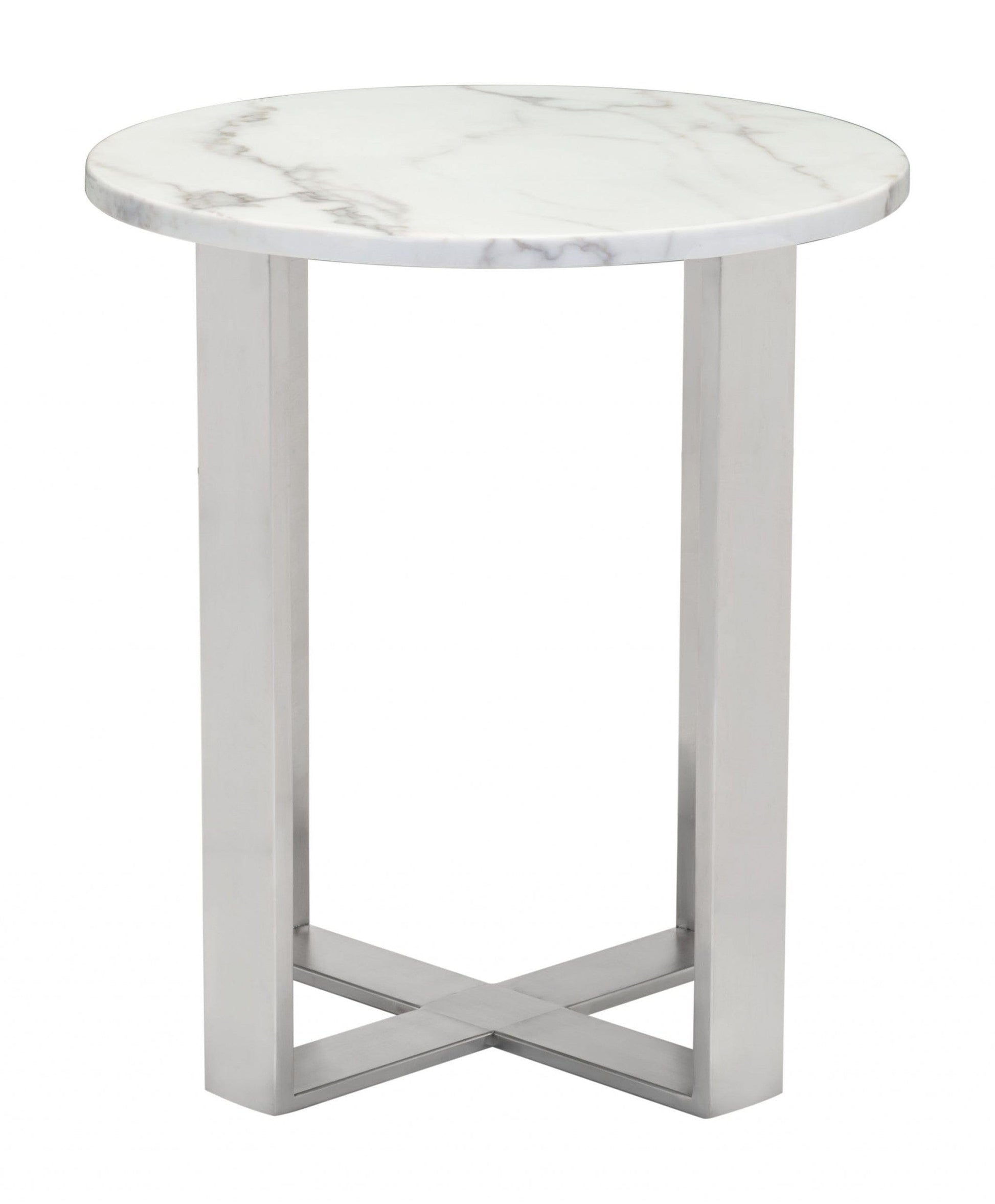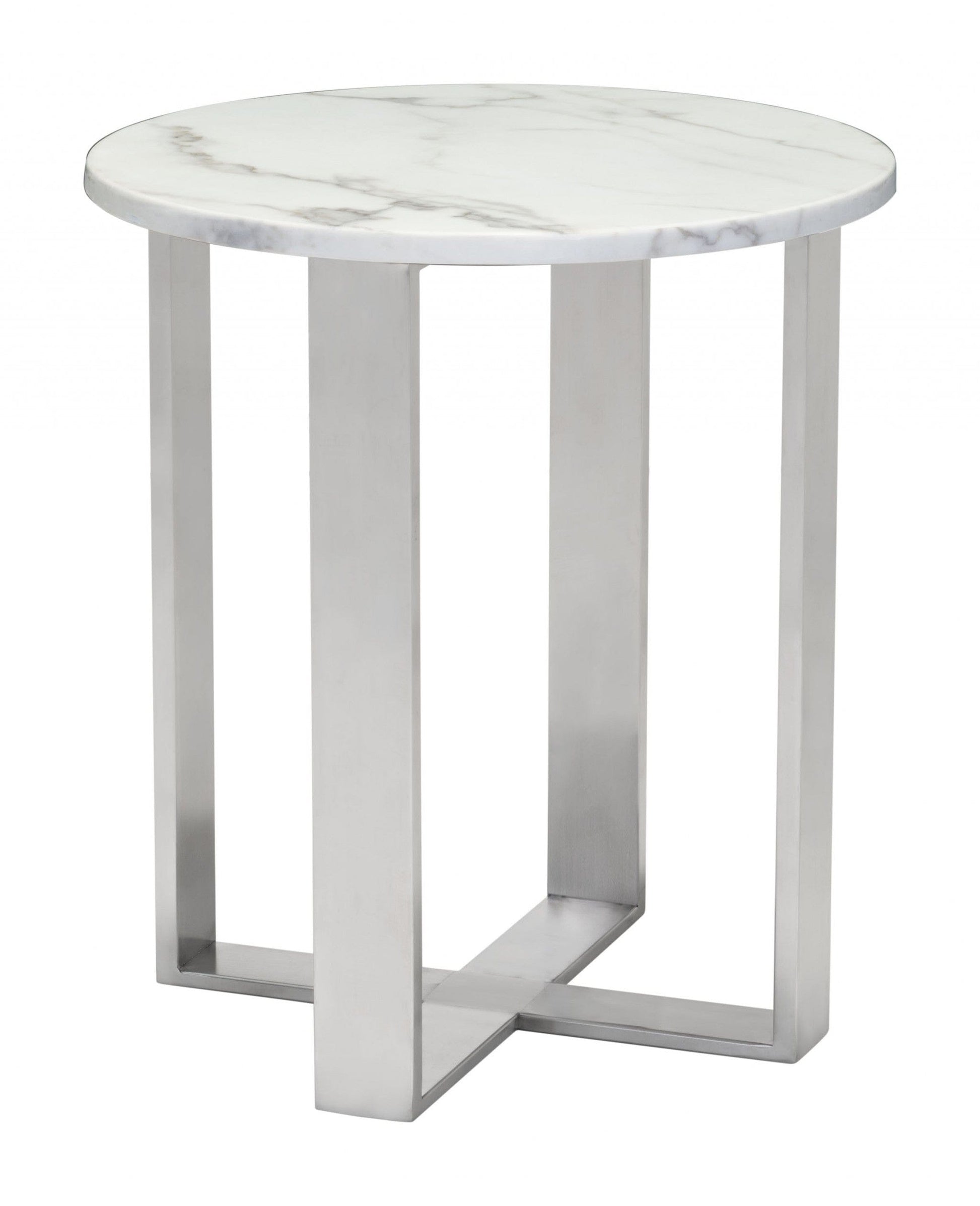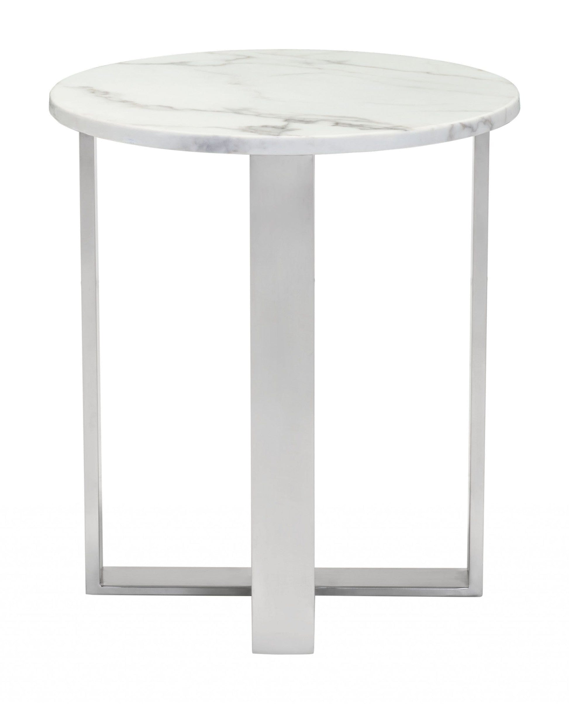 Designer's Choice White Faux Marble and Steel End Table
