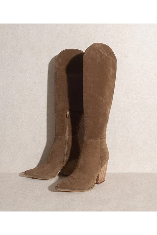 KNEE HIGH COWBOY BOOTS? YES PLEASE! THE CLARA WEARS LIKE A DREAM WITH THE PERFECT PANELS, A POINTED TOE, AND A 3.5 INCH HIGH HEEL