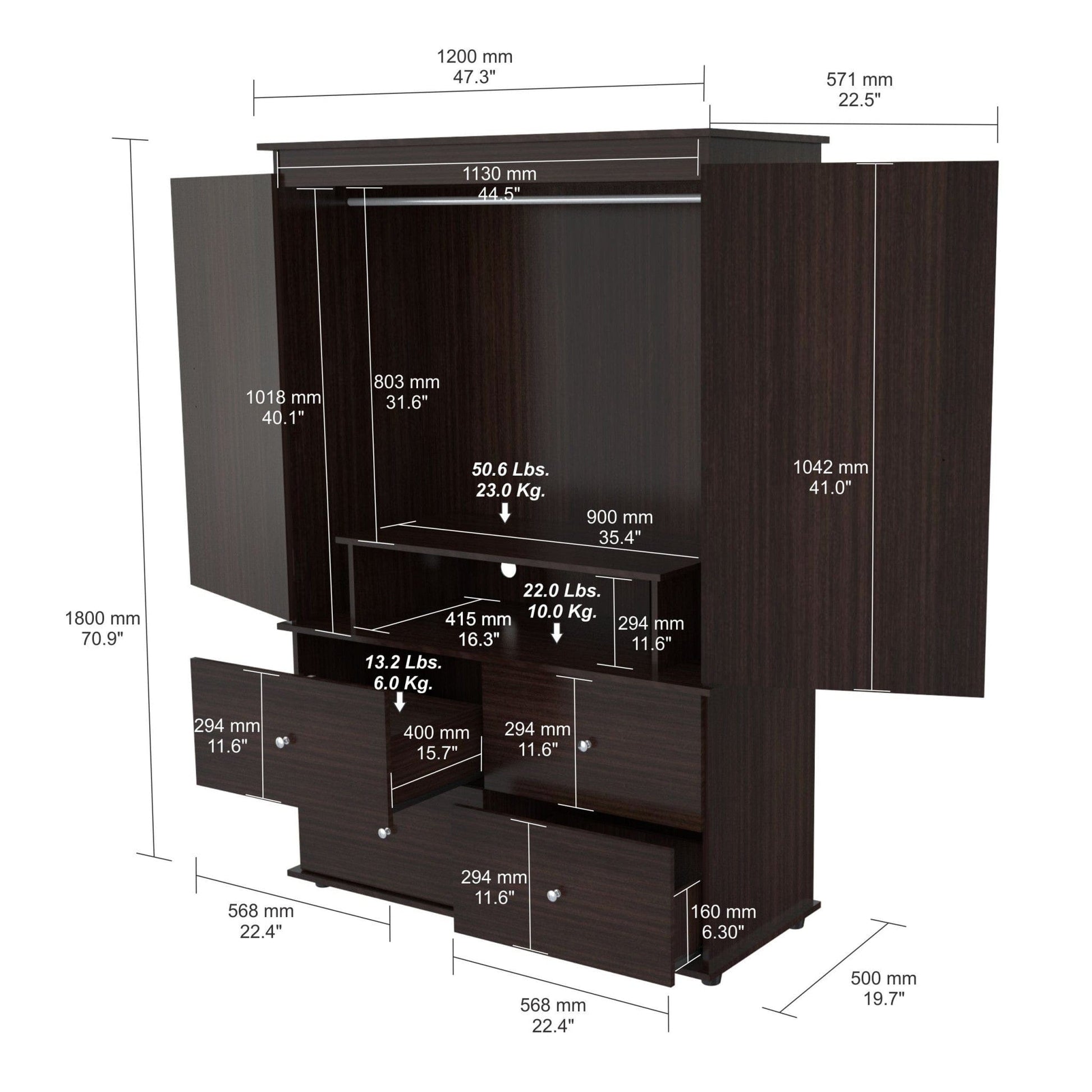 Espresso Finish Wood Four Drawer Armoire Dresser