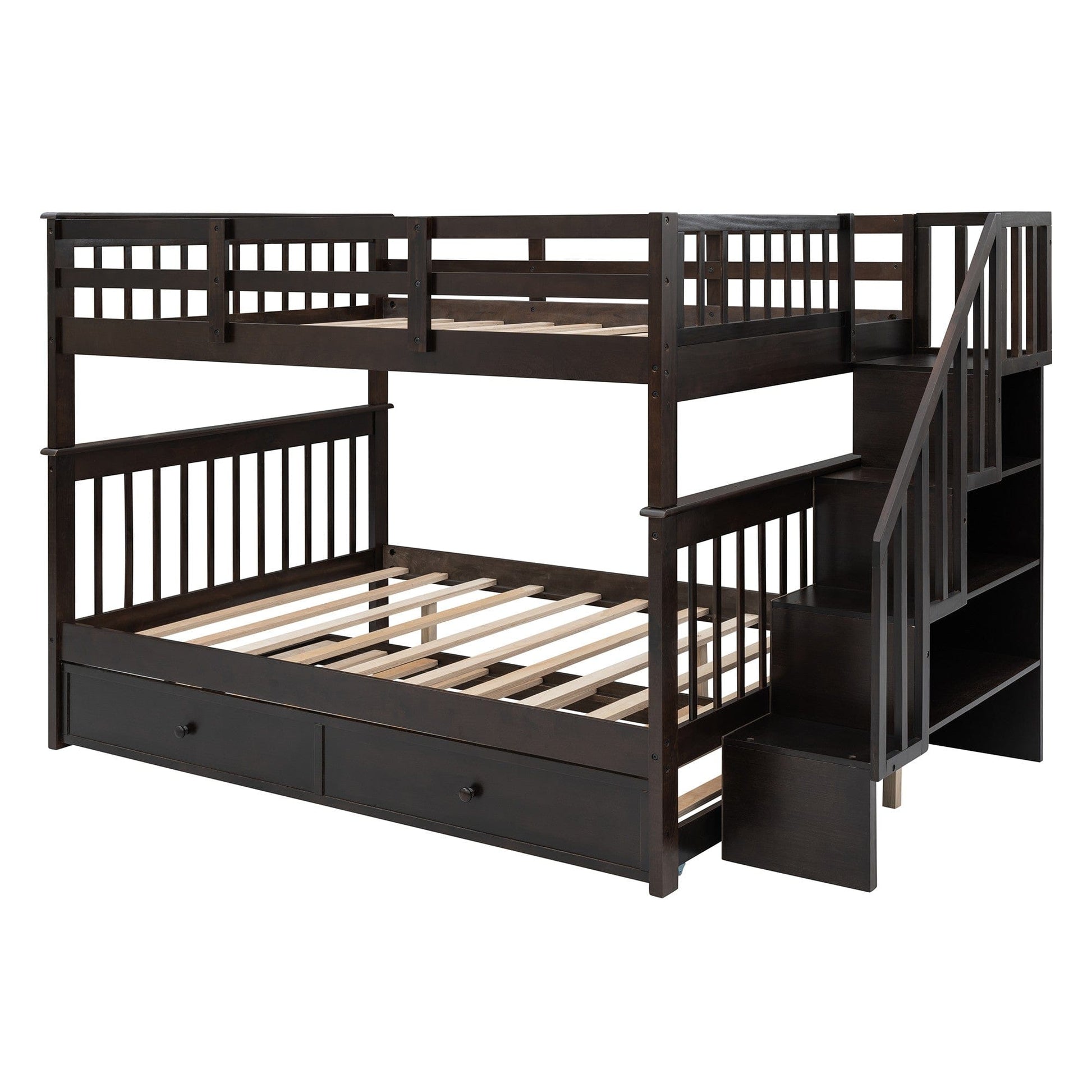 Espresso Full Over Full Bunk Bed with Stairway Drawers and Trundle