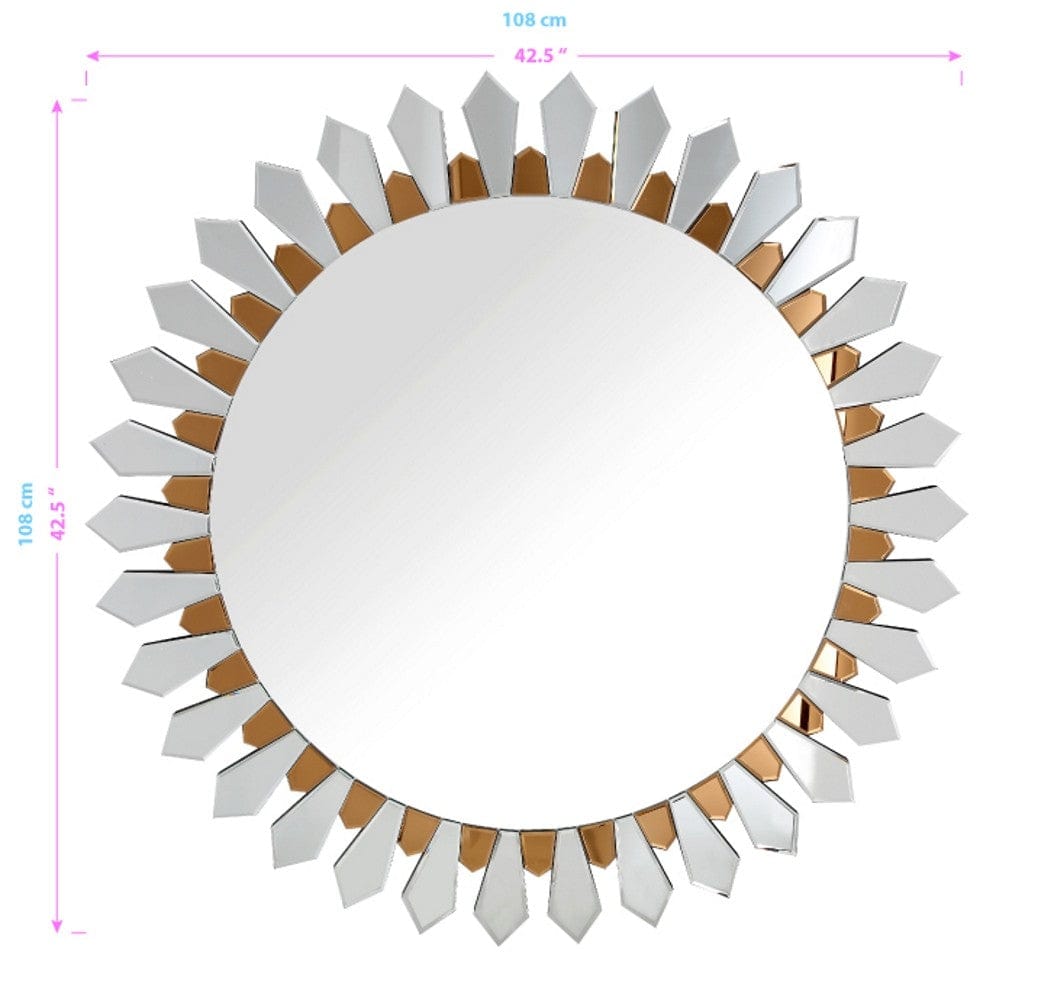 The Flower Petal Wall Mirror is a beautiful mirror that livens up any space with its large, round center framed by a burst of two toned mirrors. This mirror is perfect to put in your daughters room with its flower petal design that she will love! Hang it above a mantle to create an interesting focal point, mount two in your master bath or one in your entryway, whenever you look in this mirror, it will make your day. Whatever way you decide to use it, this mirror brightens your home and complements both cool or warm color pallets. 42.5" x 42.5" x 0.9"