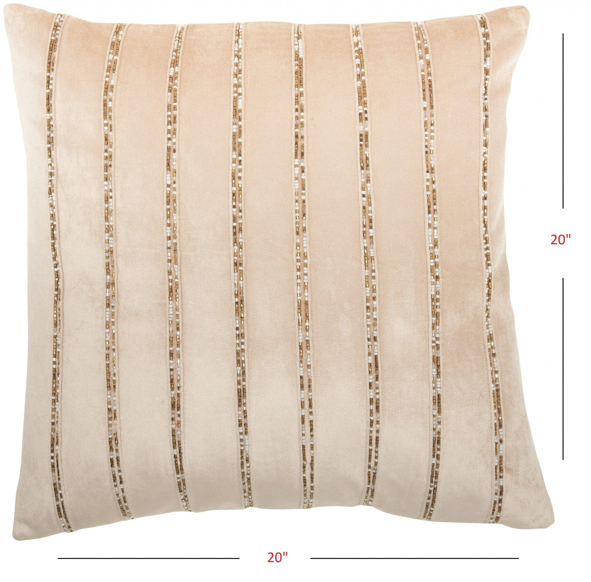 Achieve elegance and glamour in your interior with this Elegant Blush Pink Accent Throw Pillow with Beaded Details. This expertly handcrafted velvet pillow is the perfect piece to scatter on your sofa or bed with its added detail of beaded strands running along the front cover. The pretty pink velvet cover provides an extra softness and luxurious aesthetic to the pillow. The zipper closure feature allows for easy inner interchangeabilty, making this pillow a practical and glamorous must-have! 5" x 20" x 20"
