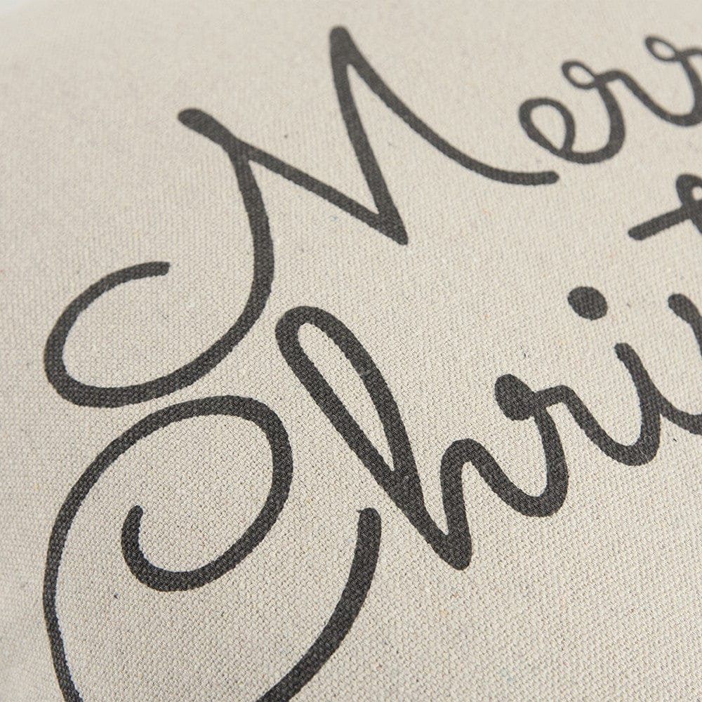 Gray and Cream Canvas Merry Christmas Decorative Throw Pillow