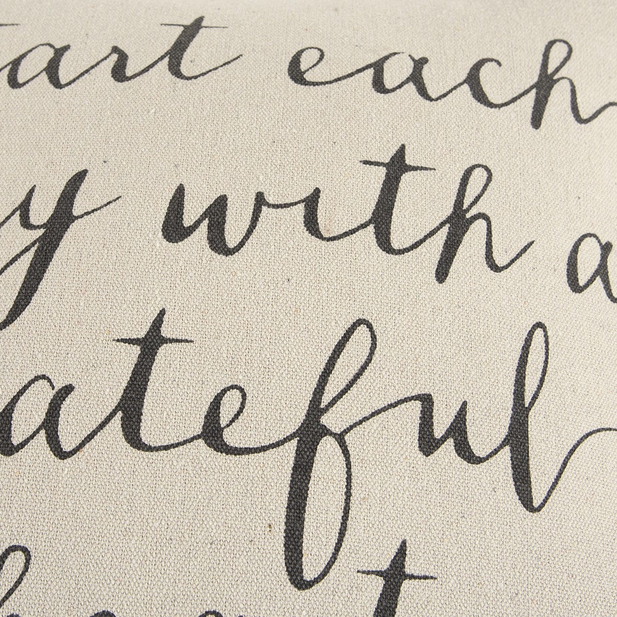 Lend a positive energy into your modern home with this simple yet stylish Gray Cream Grateful Heart Decorative Throw Pillow on the sofa or couch. Featuring a motivational expression that says, “start each day with a grateful heart” in a pretty cursive font, the pillow promotes a sense of gratitude in the air while giving a light texture to the piece. The soft and neutral hues of the pillow with the thoughtful verbiage make it an ideal accent piece to add a modern flair to your living space. The embroidered flange edges are meant to prevent fraying and lend a sophisticated look to the pillow. The solid coordinating back features a hidden zipper closure for ease of fill and cleaning. Bring a sense of character into your contemporary home with this decorative throw pillow in the room. 20” x 20” x 6.25”