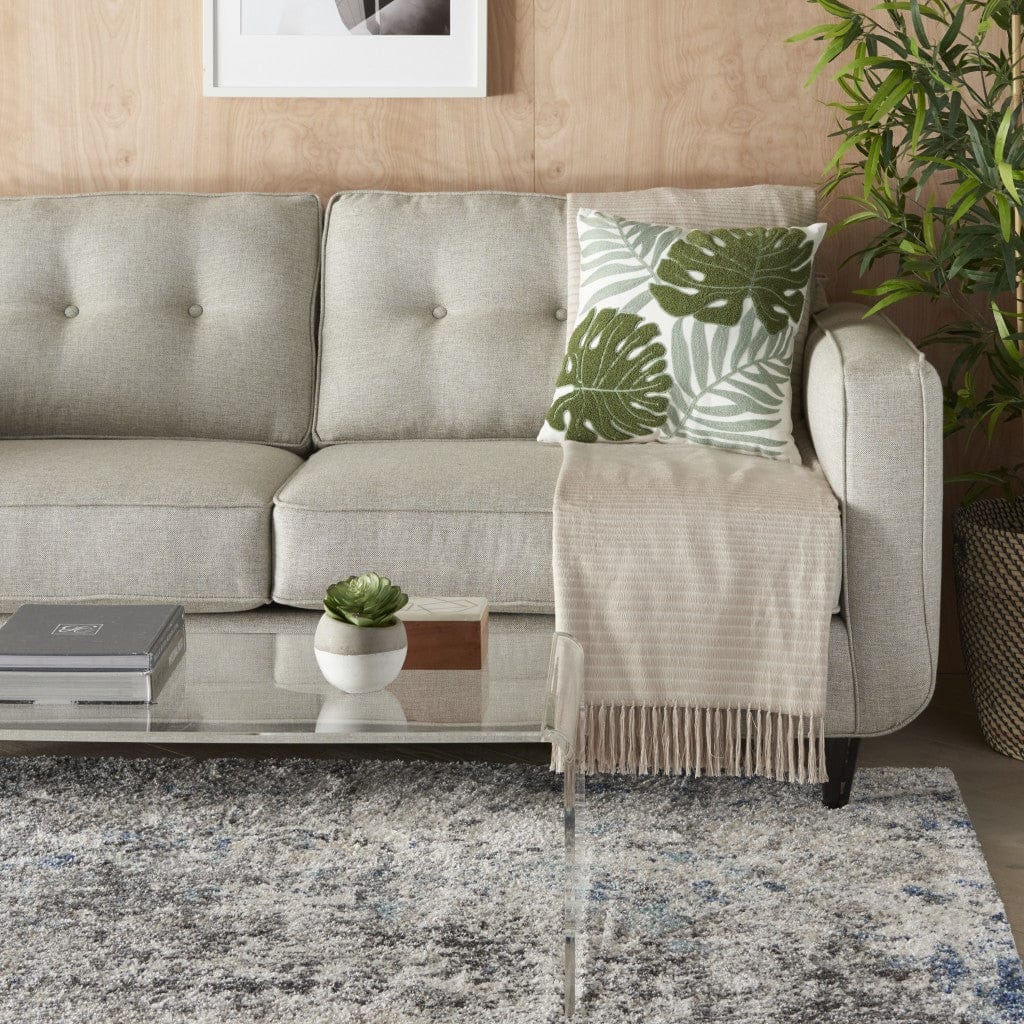 Green And Ivory Tropical Leaves Throw Pillow