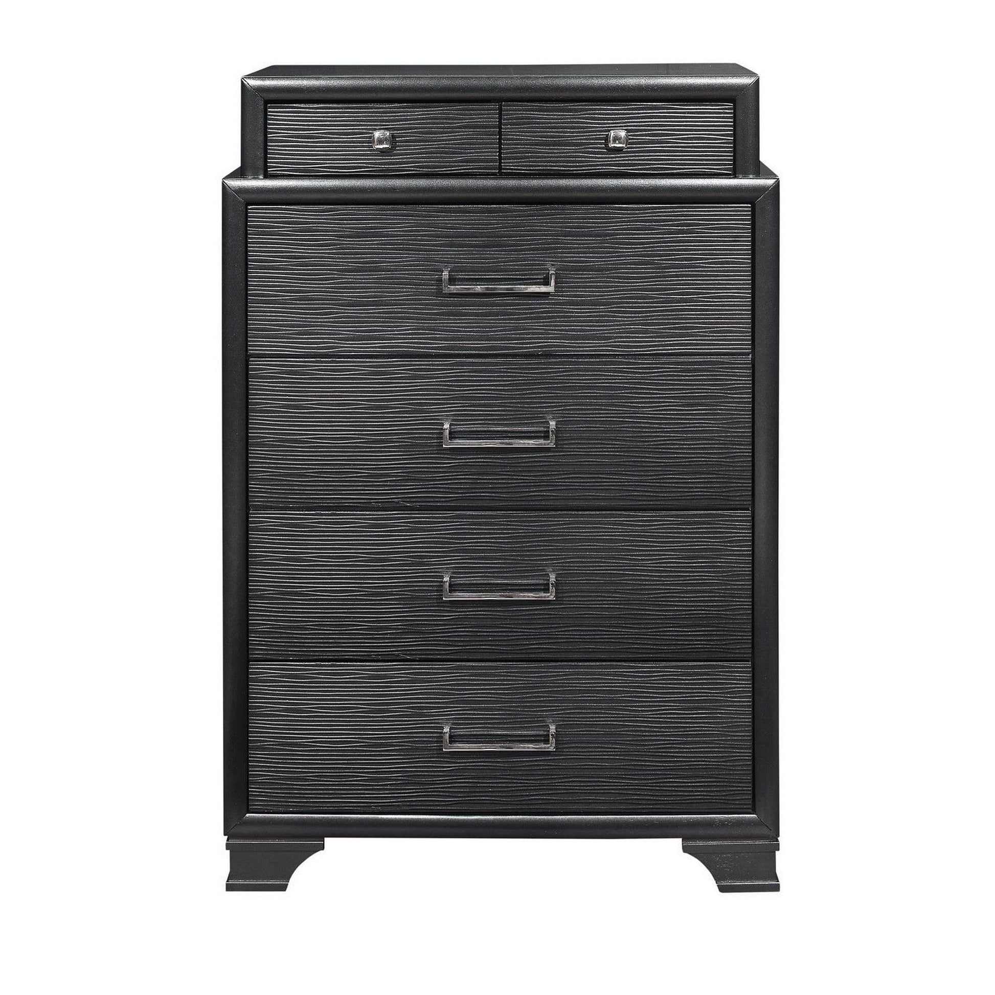 Introducing a grey 6 drawer chest , designed with sturdy construction and contemporary styling. Features include 4 large spacious drawers and 2 small spacious drawers. Intricate features include a bar style drawer handles, bracket style feet, and textured drawer fronts which together create this versatile chest fit for any decor style. Choose this grey chest to upgrade your bedroom instantly!