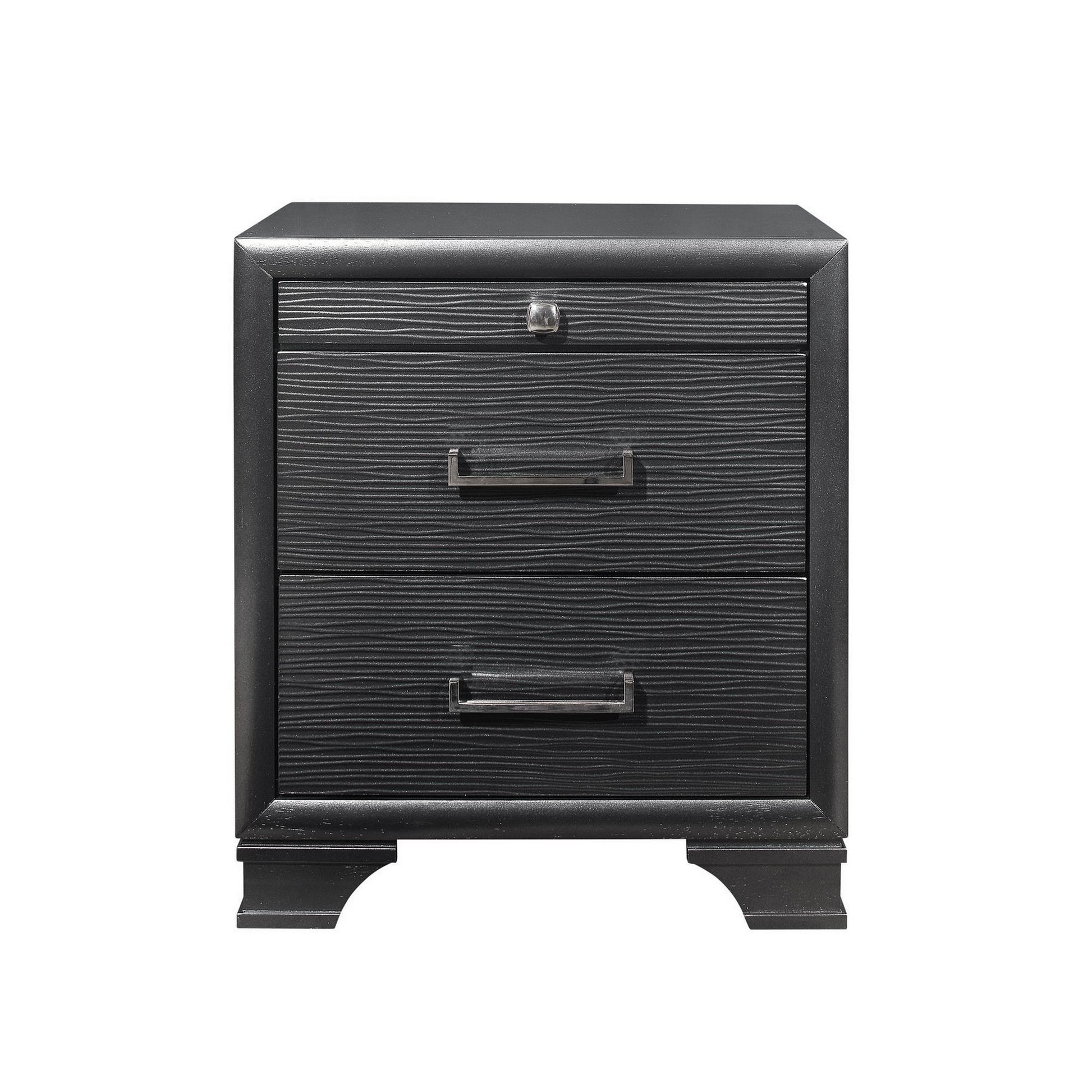Introducing a grey 3 drawer nightstand , designed with sturdy construction and contemporary styling. Features include 2 large spacious drawers and 1 small spacious drawers. Intricate features include a bar style drawer handles, bracket style feet, and textured drawer fronts which together create this versatile nightstand fit for any decor style. Choose this grey nightstand to upgrade your bedroom instantly!