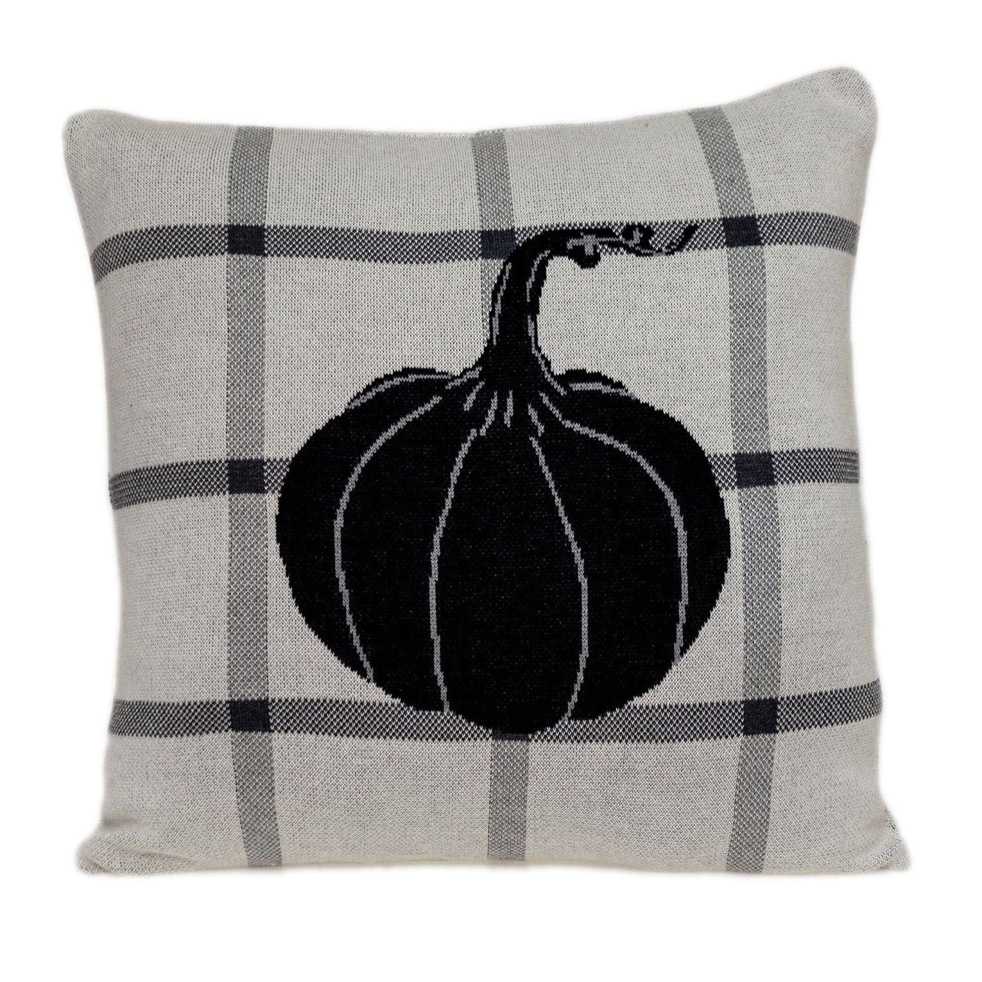 Grey Plaid Pumpkin Throw Pillow