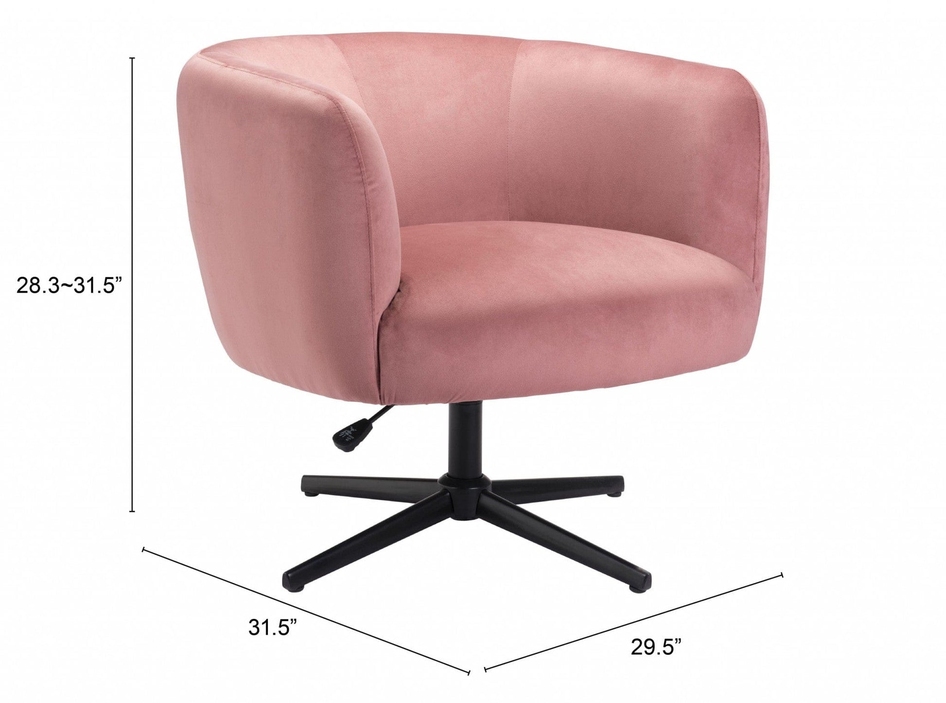 Be prepared for super comfort and convenience when you sit in the Gusto Glam Pink and Black Swivel Accent Chair. This cool chair has a bit of modern and boho chic with its rosy pink super soft polyester upholstery and thick cushiony support. The black base offsets the pop of color and gives this chair a dramatic flair. A high quality high fashion option that is built to last. 28.3" x 29.5" x 31.5"