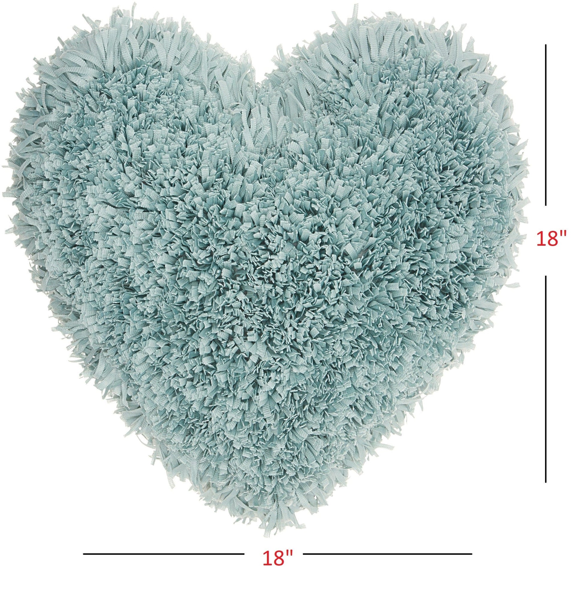 Add a pop of color and interest to your home with this cute Heart Shaped Celadon Shag Accent Pillow. The shag fabrication gives the pillow a great texture, providing a uniqueness and extra style to your bed or sofa setup. The beautifully calming Celadon blue color is perfect for any interior in need of a subtle pop of color and chicness. The zipper closure feature allows for easy cleaning and interchangeabilty, making this pillow a practical and trendy must-have! 4" x 18" x 18"
