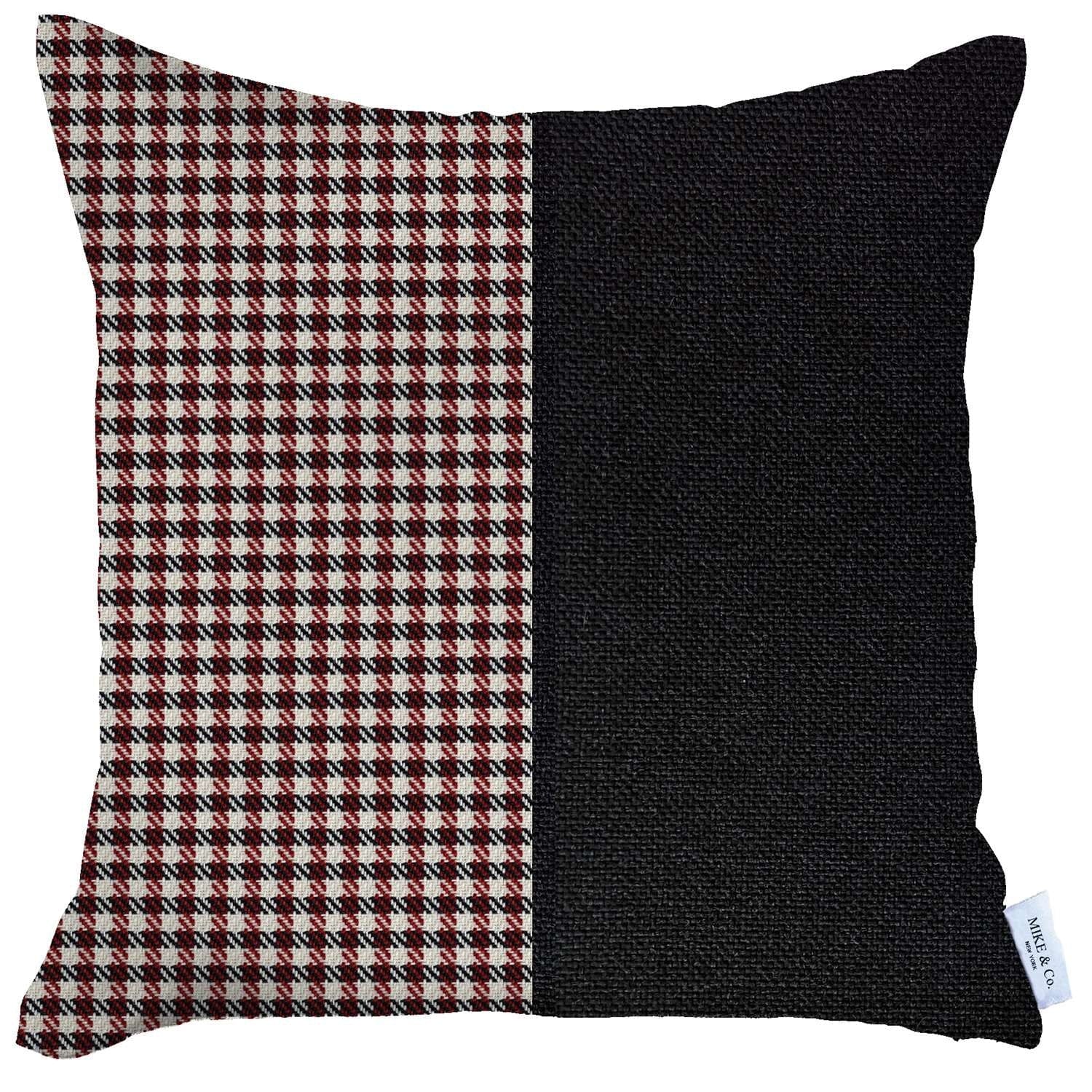 This Houndstooth Divided Black Faux Leather Throw Pillow kindles a strong first impression with its two-toned design pattern. Bisected with a matte black vegan faux leather on one half and a classy houndstooth pattern in jacquard weaving on the other to create a visually striking contrast. Accentuating class and quality with OEKO-TEX Standard 100 certification and comprises of polyester, Pvc, and Pu in the making to ensure durability and product safety while allowing only spot cleaning. The all-around hidden zipper closure gives the pillow a refined finish that feels luxurious on the touch. It comes with a 100% cotton-covered poly filling insert for maximum comfort and a fluffy appearance. Pair this minimally designed throw pillow with any vibrant or neutral interior décor and it will beautifully blend in with its surrounding. 18” x 18” x 1”