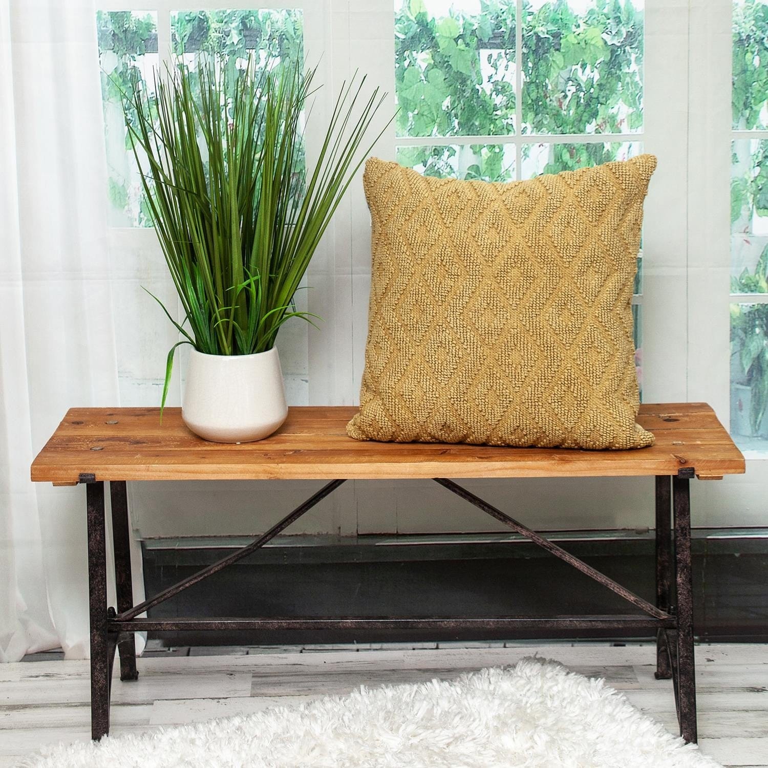 Jacquard Diamond Pattern Decorative Mustard Yellow Throw Pillow
